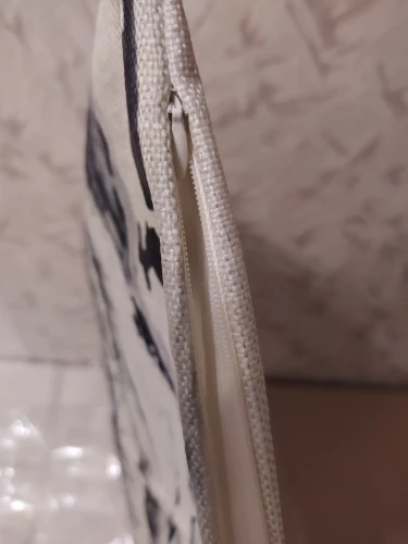 Доставка около 50 дней в Санкт-Петербург. Качество хорошее, материал плотный, потайная молния. Размер наволочки получился 45*44. Рисунок желательно поднять выше, на моей подушке 43*43, довольно туго набитой, лодка оказывается незаметна. Возможно лучше сядет на плоскую и меньшую подушку.
