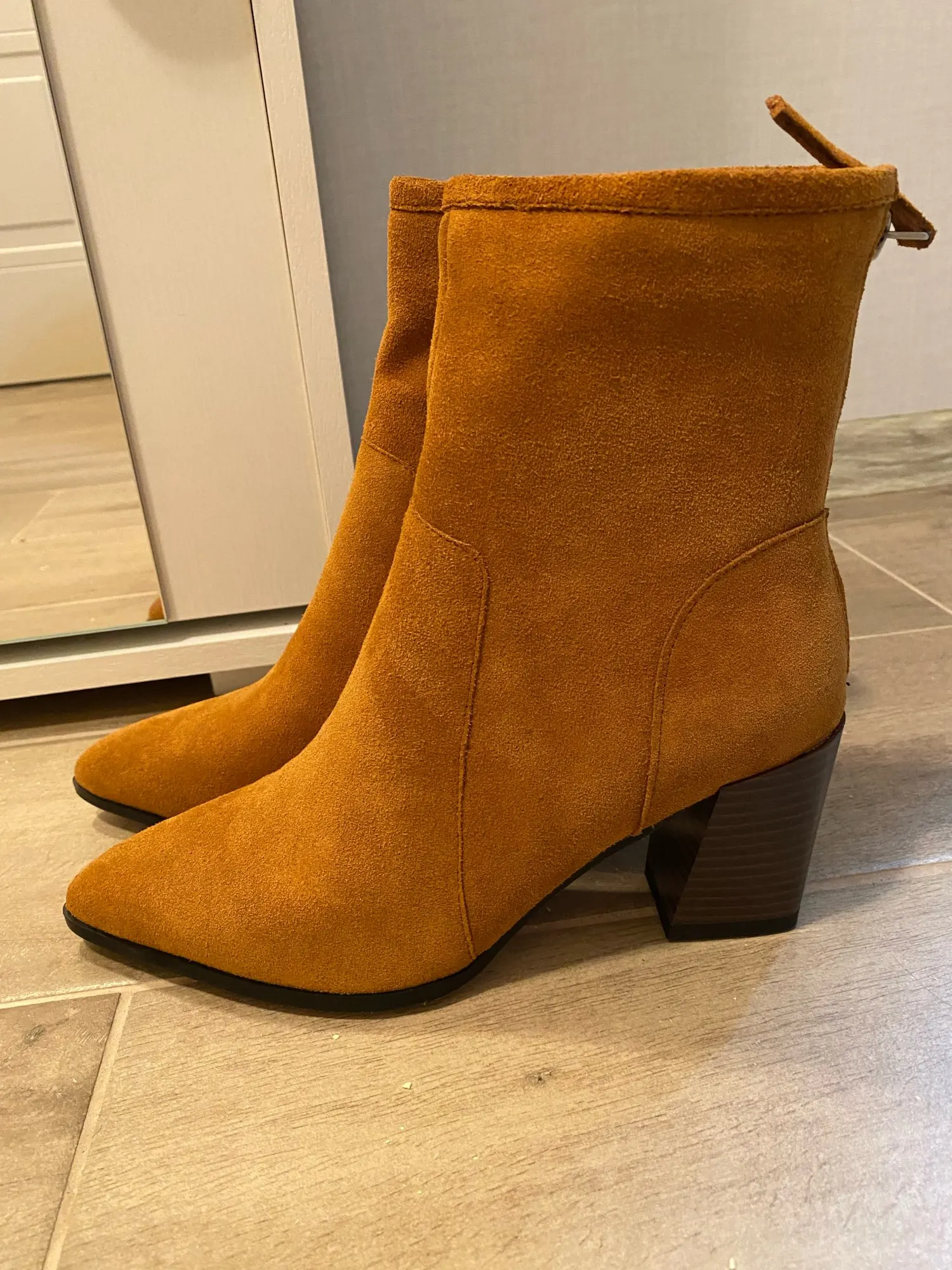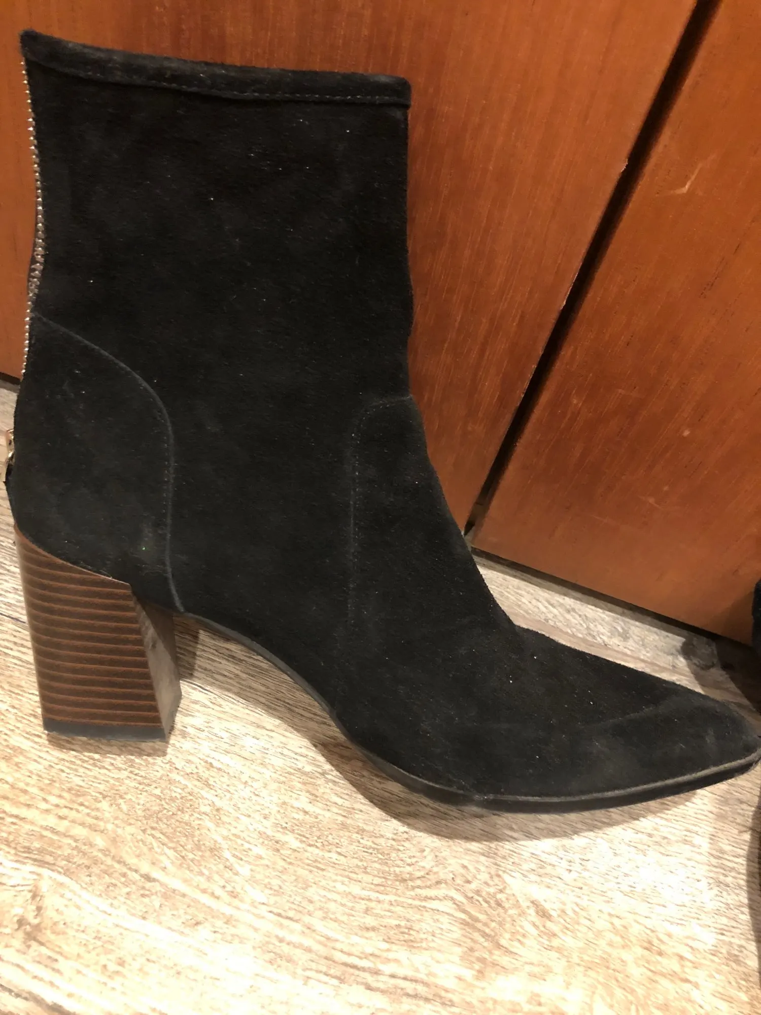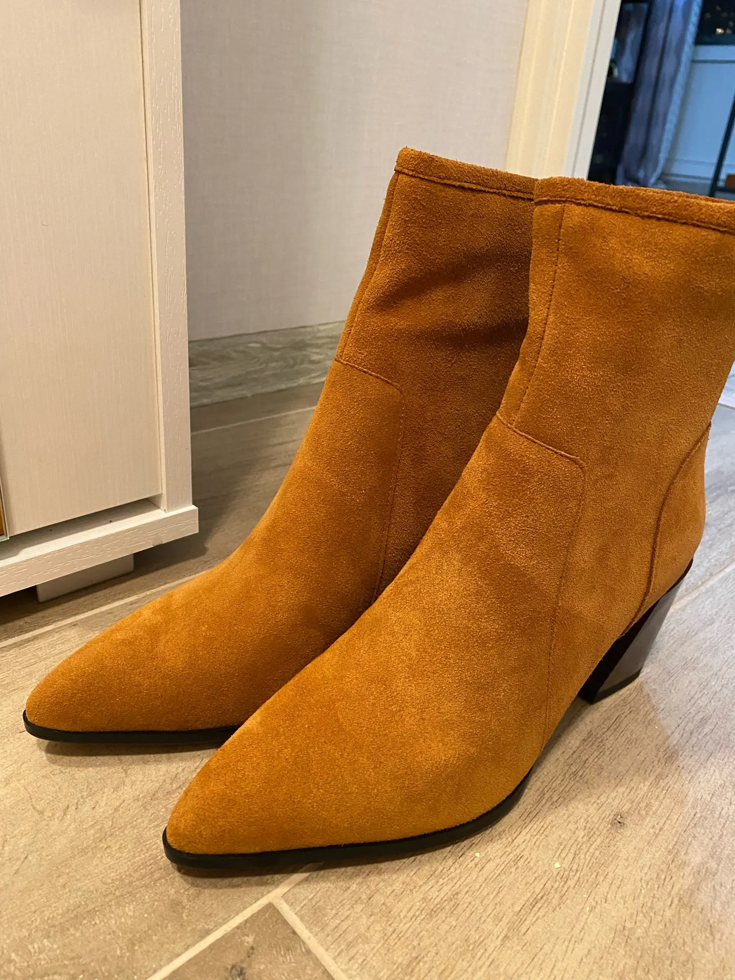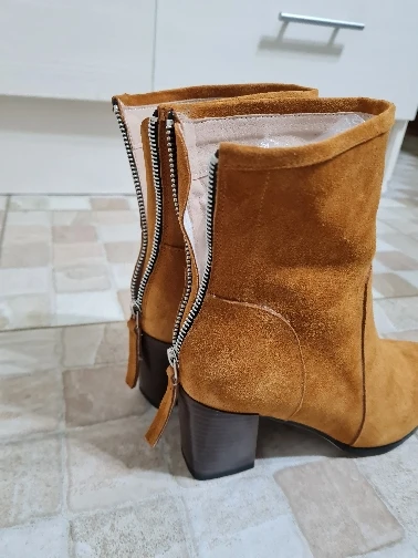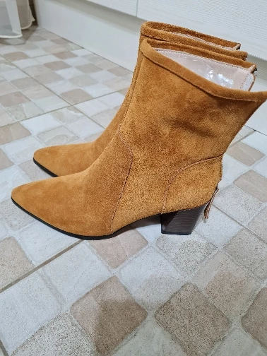 Демисезонные женские ботинки с острым носком на массивном каблуке, замшевые кожаные женские ботинки на высоком каблуке (5-8 см), однотонные Женские ботинки в стиле ретро