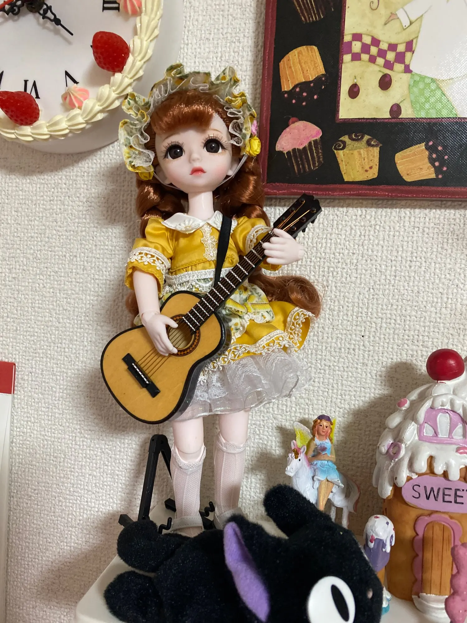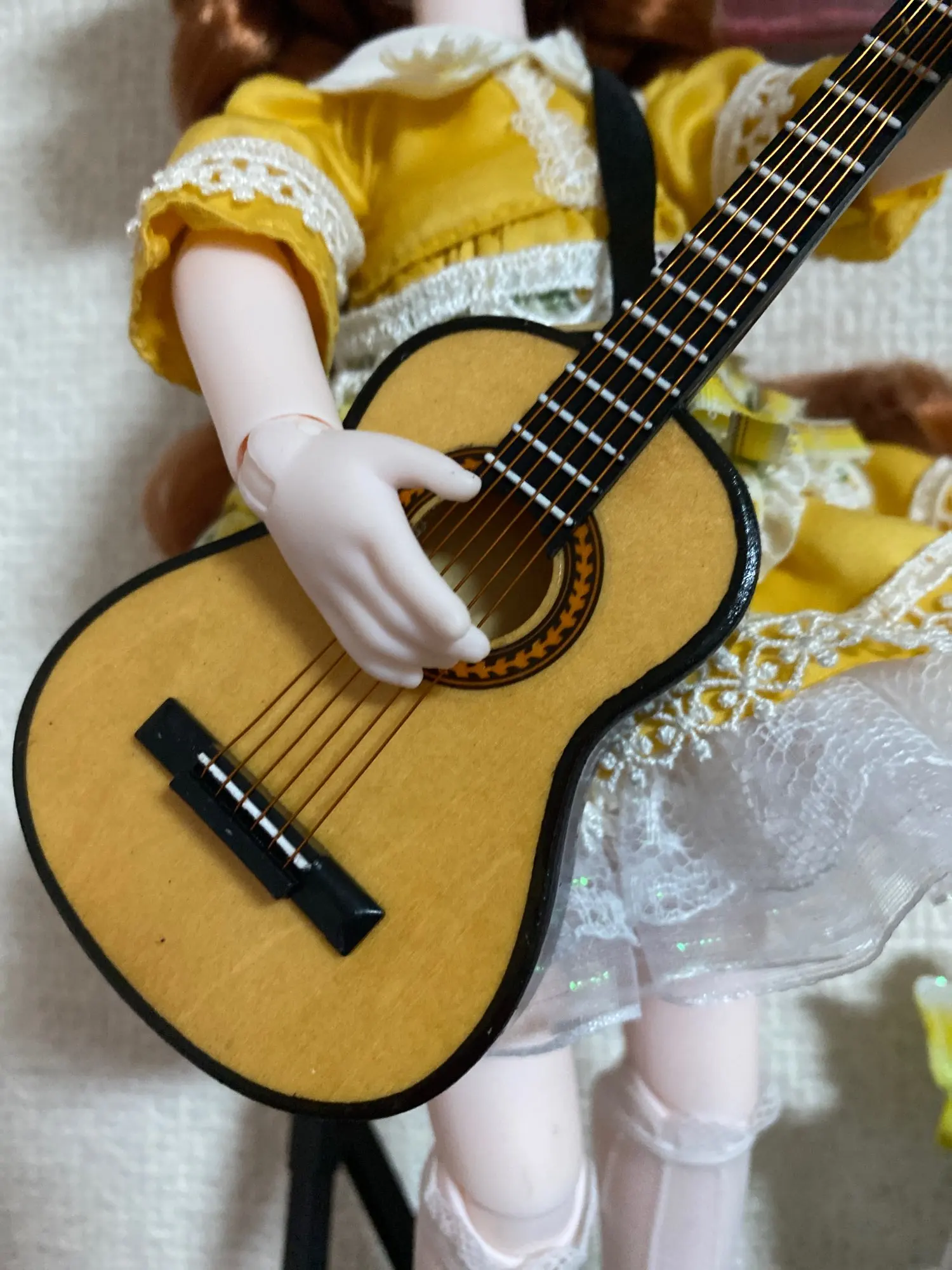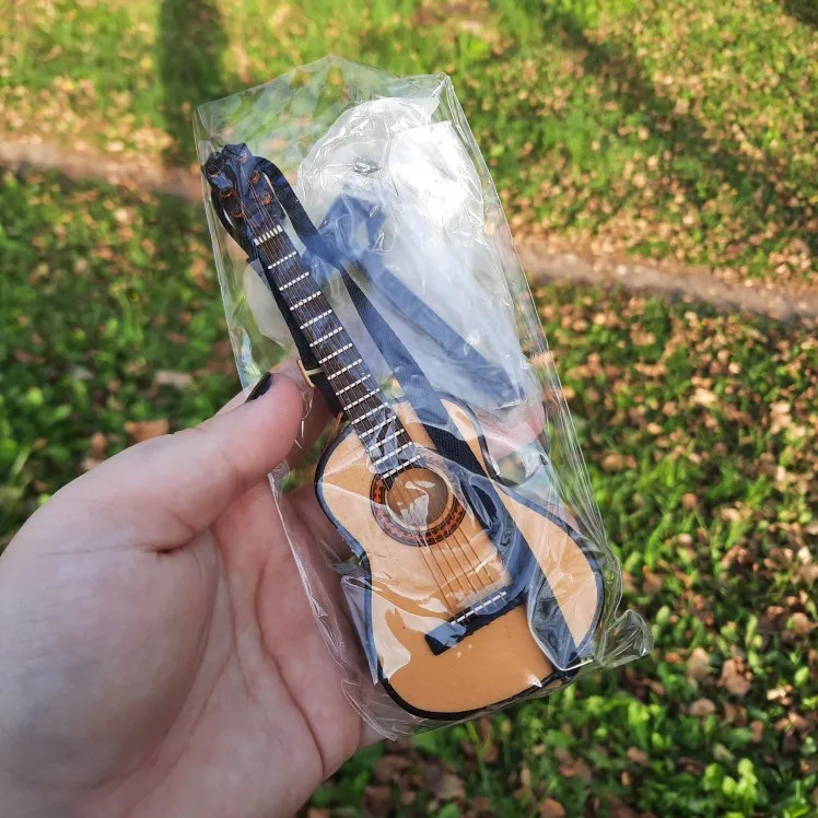 Деревянная модель электрической гитары ручной работы в масштабе 1/6 с подставкой, кукольный домик, миниатюрные музыкальные инструменты, игрушки с орнаментом