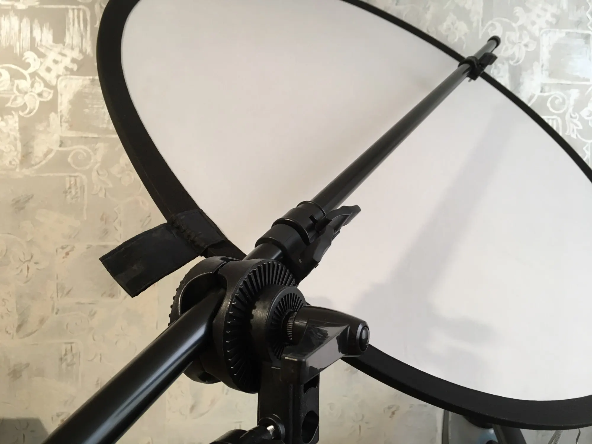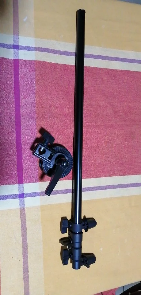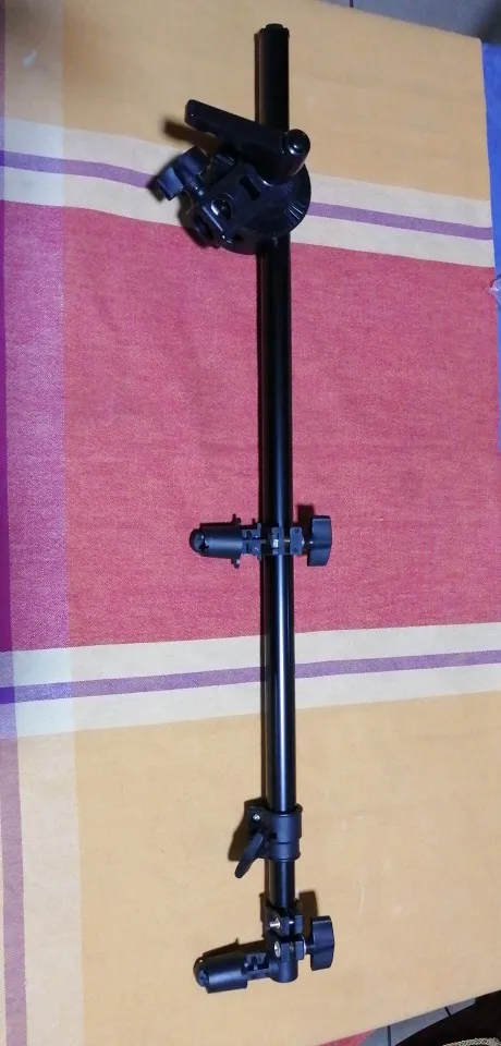 Доставка со склада в РФ за 9 дней через Почту России. Трек отслеживался. Штанга-держатель сделана качественно. Шарнирное крепление имеет 4 отверстия под трубки различного диаметра, поворачивается под разным углом. Сама штанга имеет 3 телескопические секции, которые фиксируются зажимами и 2 пружинные зацепки для крепления отражателя. Однако в комплекте нет штатива. Из описания этого было не понятно. Придётся покупать штатив отдельно. Не совсем понятен наконечник штатива под болтовой зажим шарнирного крепления. Продаются только под винт 1/4 д. Придётся поискать у др.продавцов.