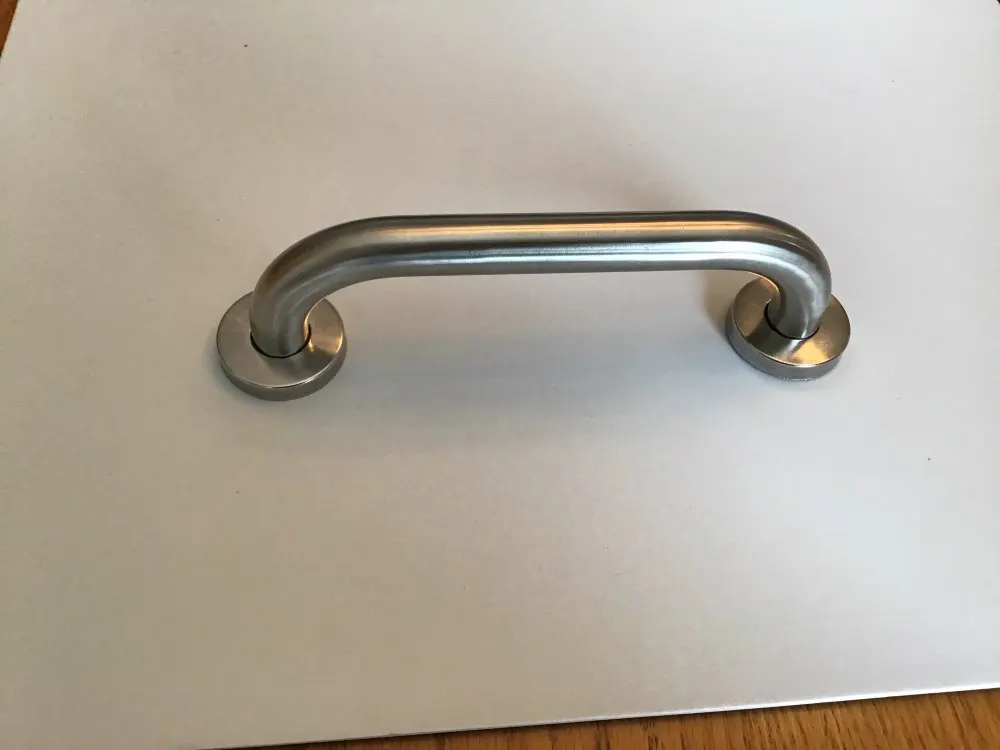все как на картинке ручка держится на двух болтах м6 по одной нитке резьбы сталь матовая для двери подойдёт