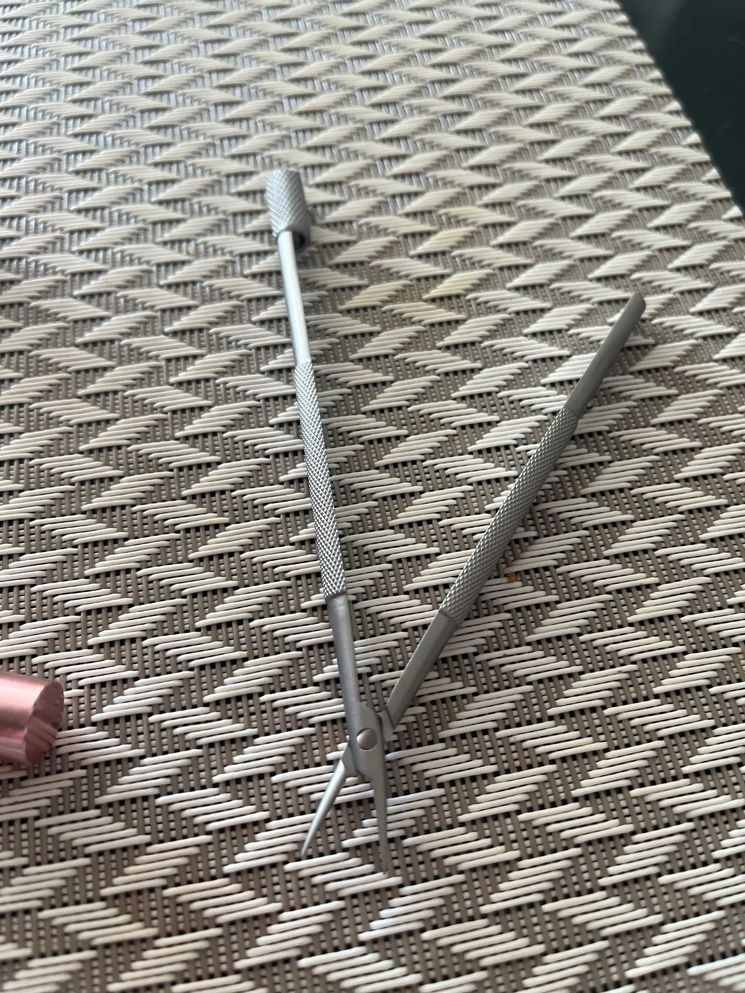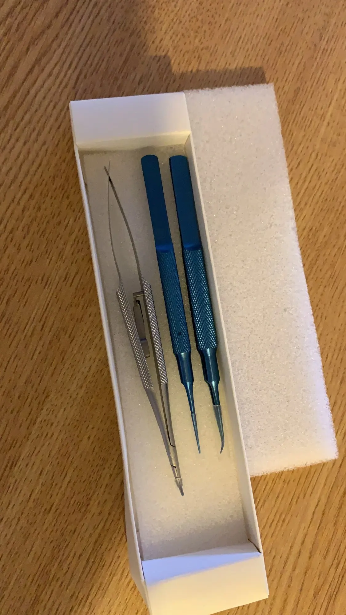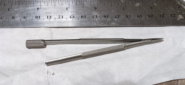 Очень качественный девайс. Накатка супер, не скользит в руках и очень тактильно приятный. Подпружиненная головка позволяет зажать в губках предмет и избавляет от необходимости держать сомкнутым сам пинцет, что существенно упрощает работу. Судя по всему поверхность покрыта методом иодированиях. Покупкой доволен, продавца рекомендую