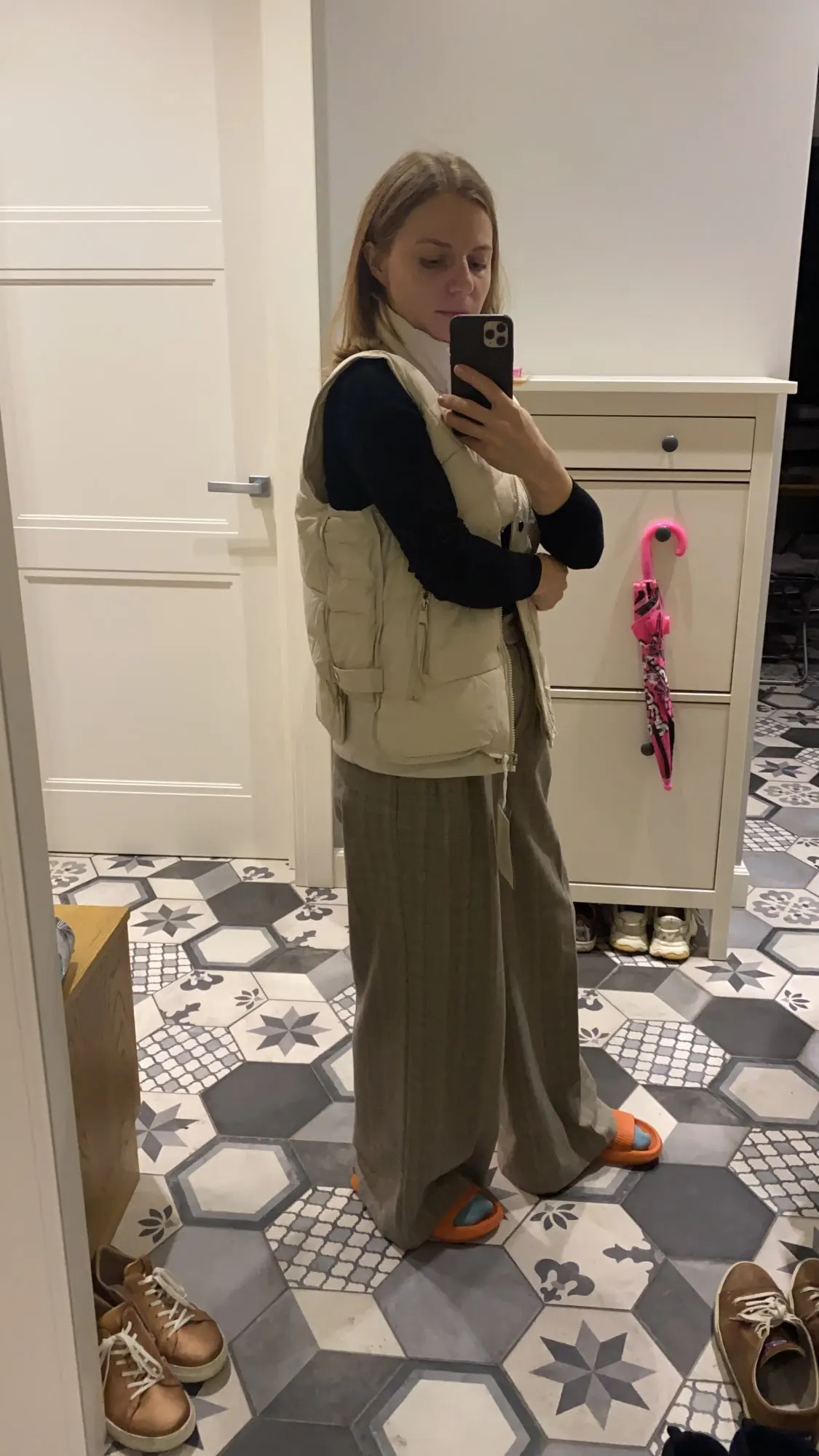 Очень хорошая жилетка, сшита качественно, идёт в размер.