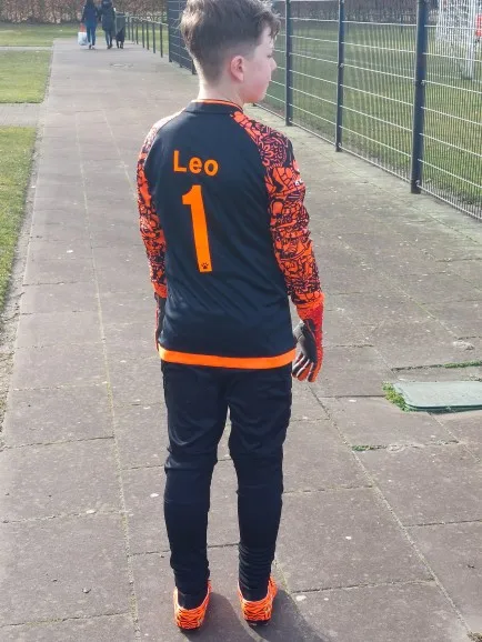 Шикарная вратарская футболка на мальчика. Размер , цвет огонь. С номером 8 дней отправляли, но дошла за неделю.