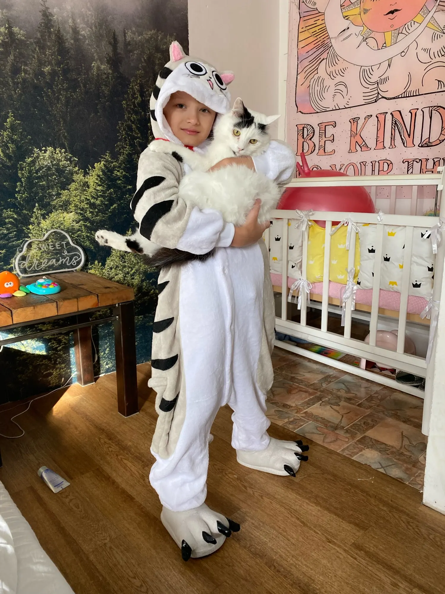 Детские Кигуруми для девочек и мальчиков, зимние фланелевые пижамы с мультяшным котом для мальчиков и девочек, детские пижамы, одежда для сн...