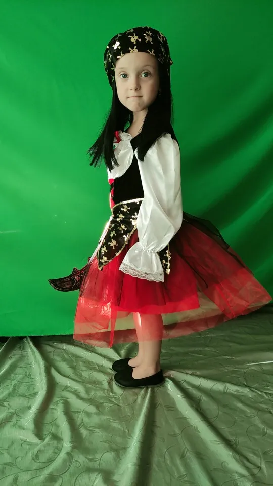 Очень красивый костюм. Яркий, как на картинке. Доставка долгая, но не страшно.