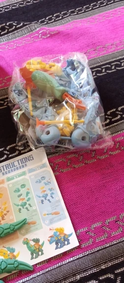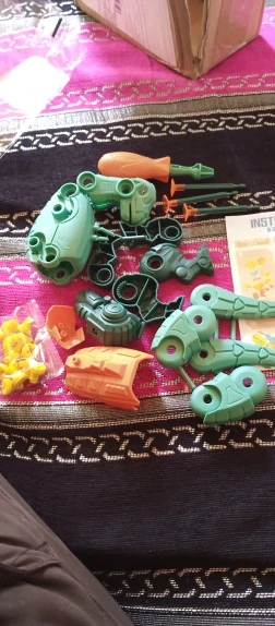 Собирали вместе с папой, в комплекте идет специальная отвертка для деток, винтики идут с запасом. Сверху устанавливается специальная пушка ( неразборная) для неё идут с наборе 3 присоски. Она легко снимается и ей можно играть отдельно, пока от неё ребенок без ума и ходит пуляет ей по всему дому. До разборки думаю до растем постарше. В магазине продавца имеется 3 расцветки; синий, зелёный, жёлтый. Покупкой очень довольны, могу рекомендовать.