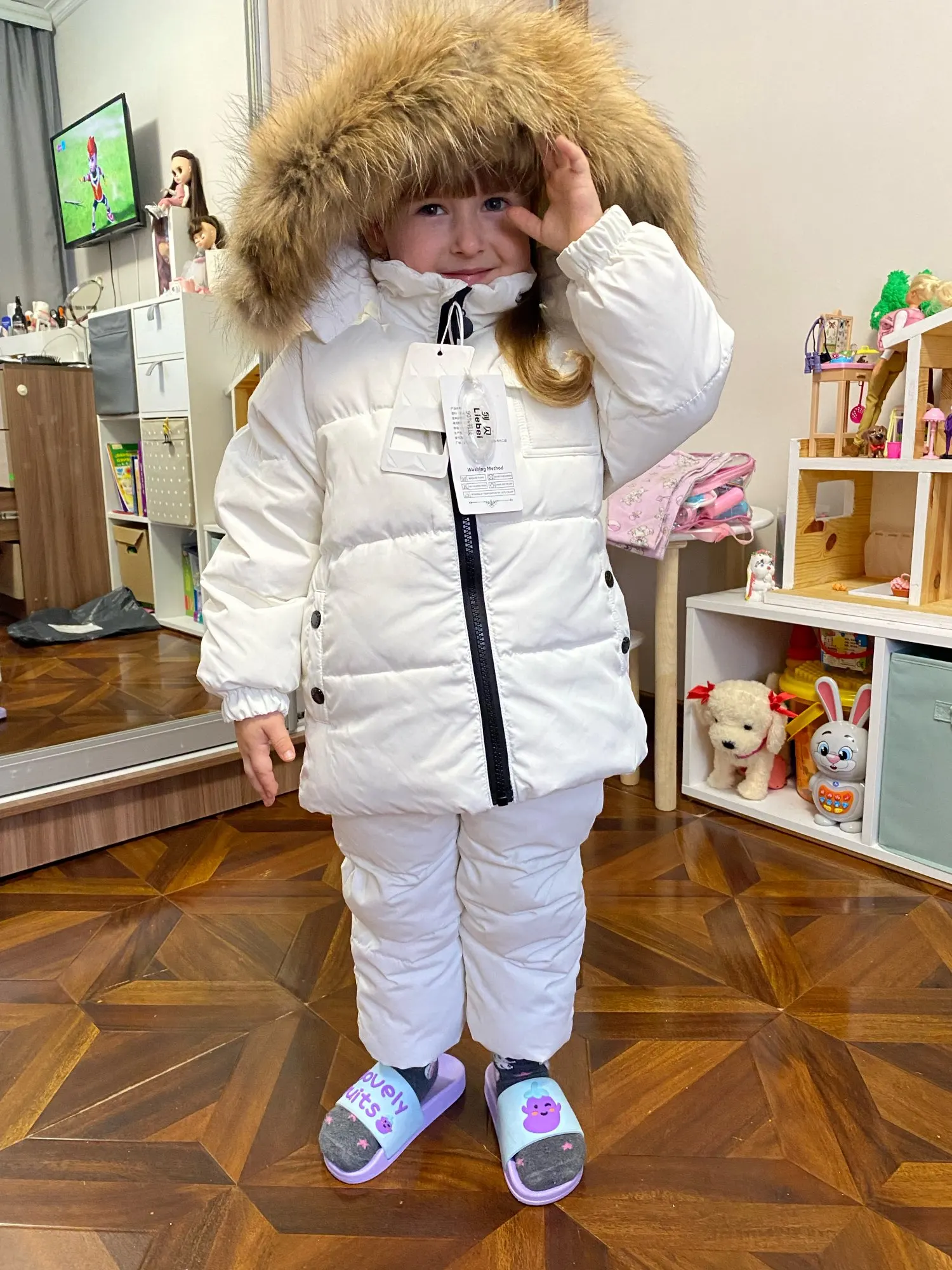 Детский пуховой костюм для девочек на русскую зиму, теплые зимние костюмы для мальчиков, куртка на утином пуху + комбинезон, комплект одежды ...