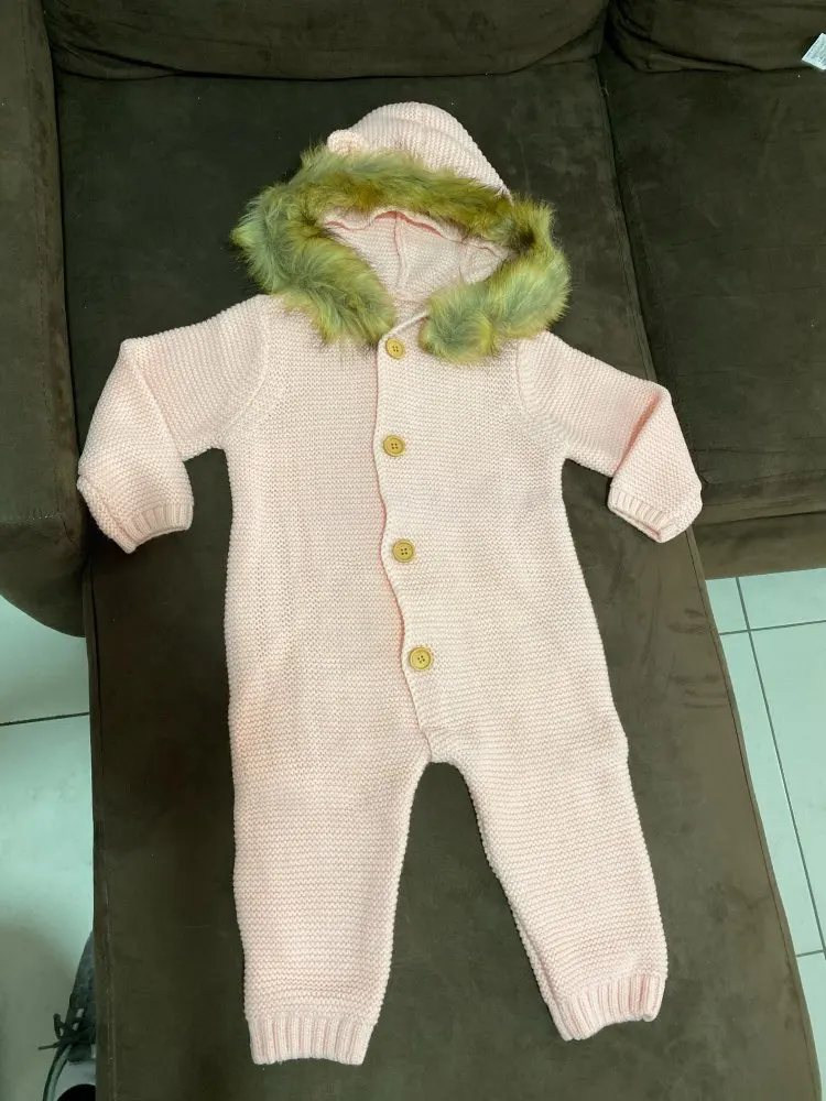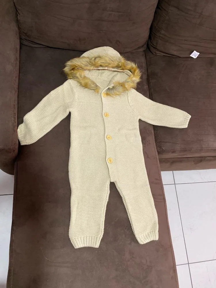 Детский вязаный комбинезон для новорожденных, Осенний комбинезон с длинными рукавами и меховым воротником для мальчиков и девочек, зимняя ...