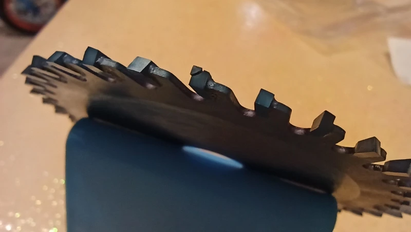 Пока оцениваю по внешнему виду - пилить нечем. В объявлении конечно картинки более нарядные. По факту выглядит как на картинках под описанием. Через синеву на одной из сторон проглядывает маркировка. Через пакет и резинку сколов не заметил. Весь в масле и в двух пакетах - консервация на 5++ =) Сроки доставки разумные. Если результаты пиления не порадуют, постараюсь дополнить отзыв.
