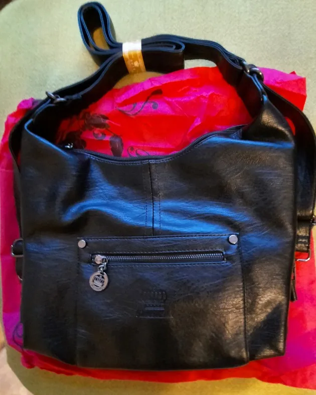 Получила сумочку через 1,5 месяца. Модель понравилась, много внешних и внутренних карманов, очень вместительная. Качественный пошив, искусственная кожа, по такой цене это понятно. Спасибо продавцу.