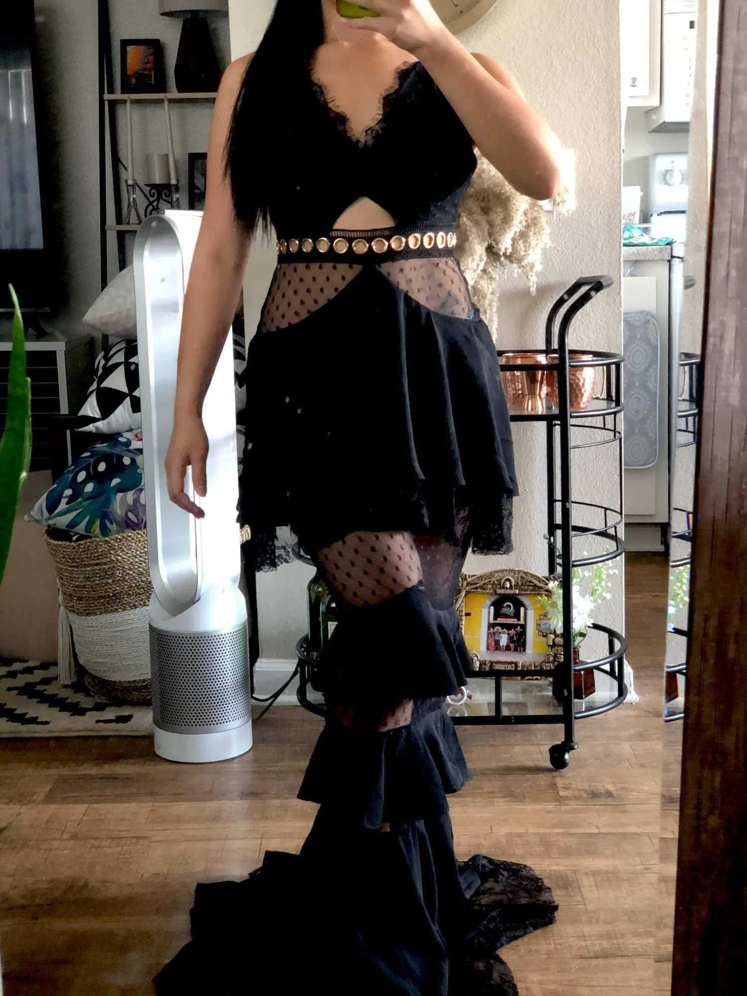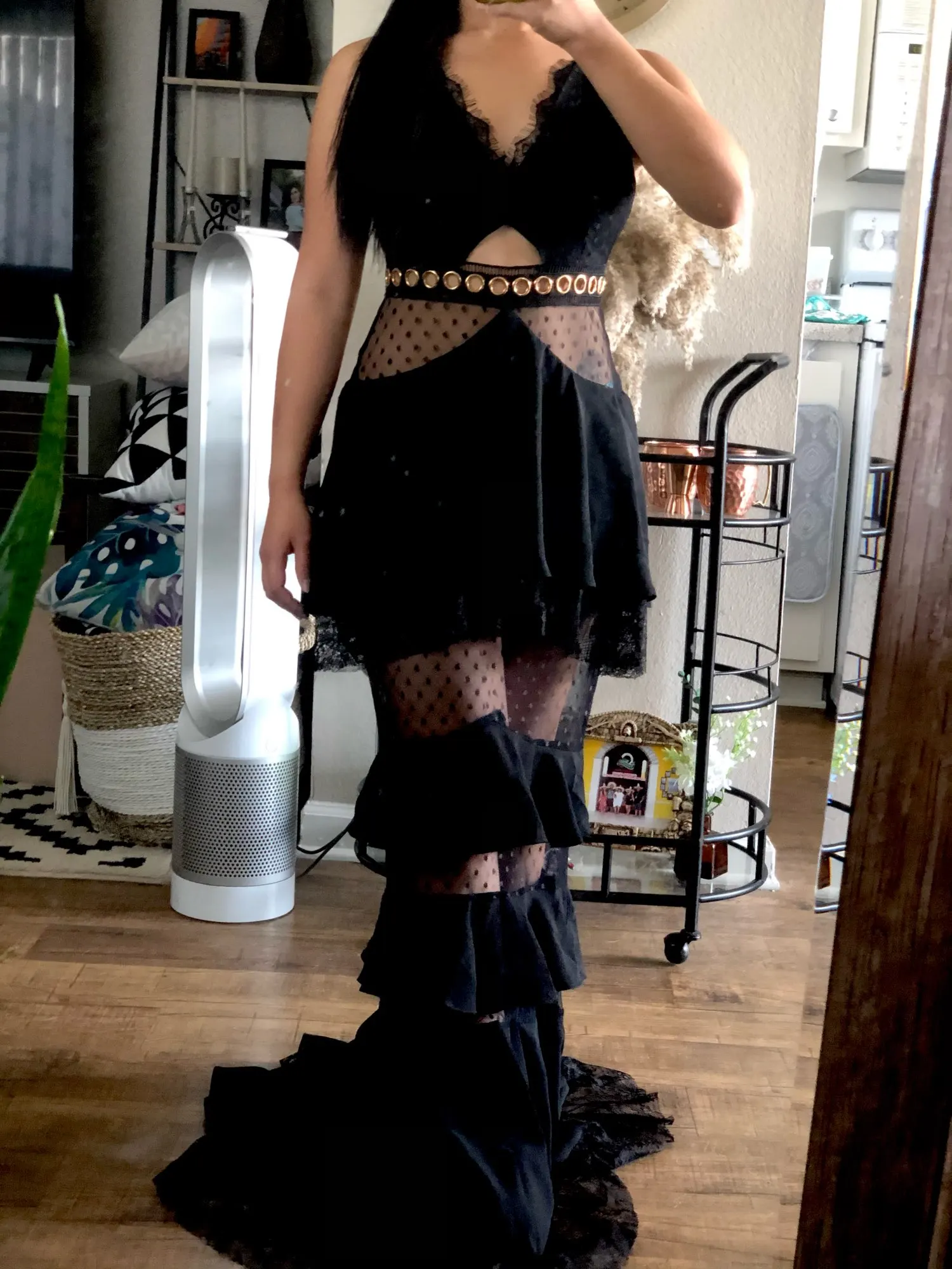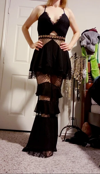 Платье очень длинное. на рост 170 + 15 см каблук, платье нужно укоротить на 3 см. Большой минус, что на попе кружева короткие и видно трусы. придется дошивать кружева.