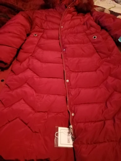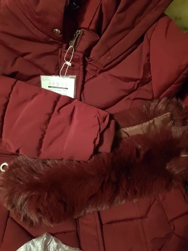 Пальто на синтепоне, в описании написано пуховое, подкладка не хлопок, чистая синтетика. Размер соответствует размерной сетке