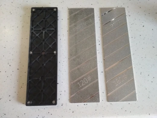 Отличная штука, выровнял камень с двух сторон (1000/6000), напыление не слезло. Пластины на сильных магнитах.