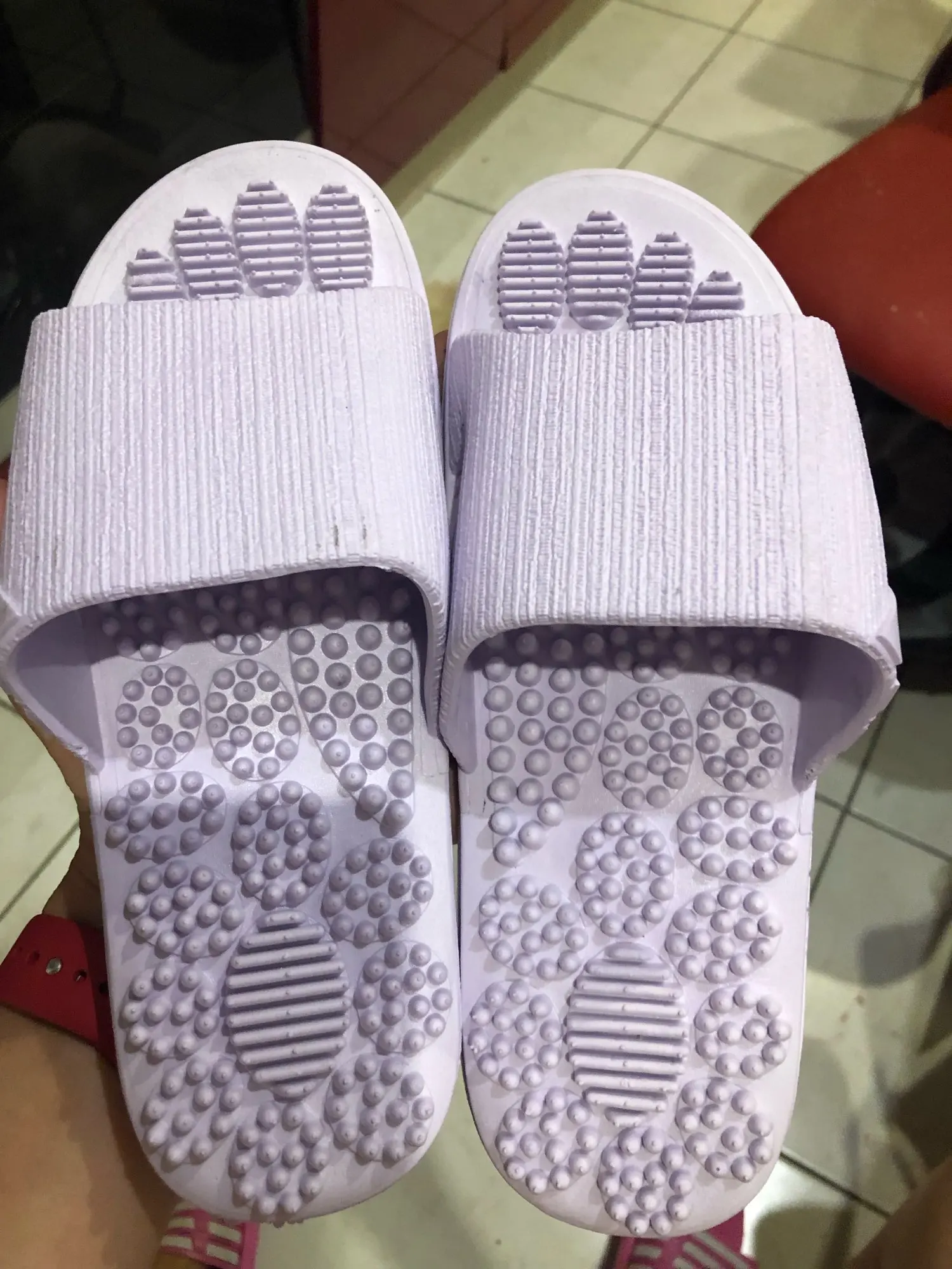 Тапки купила 11.11 с хорошей скидкой. Заказы объединили в один большой пакет,котопый задержали на таможне 07.12 на целый месяц из-за ошибки в весе. В итоге , купленные подарки получила только 11.01. Тапки соответствуют описанию. Ходить в них непривычно и неудобно (пока что). Надеюсь, со временем привыкну. Массажный эффект есть. С продавцом не общалась. Товар и продавца рекомендую.