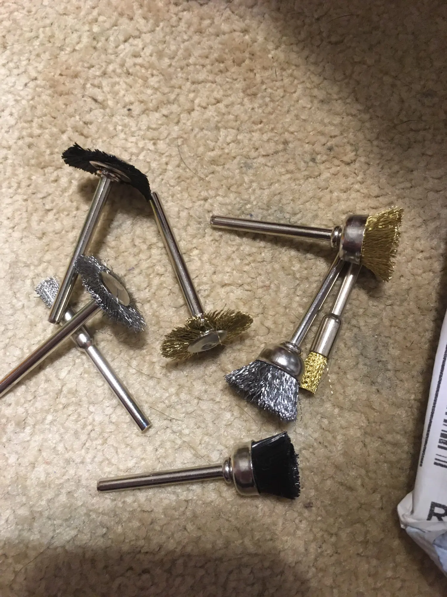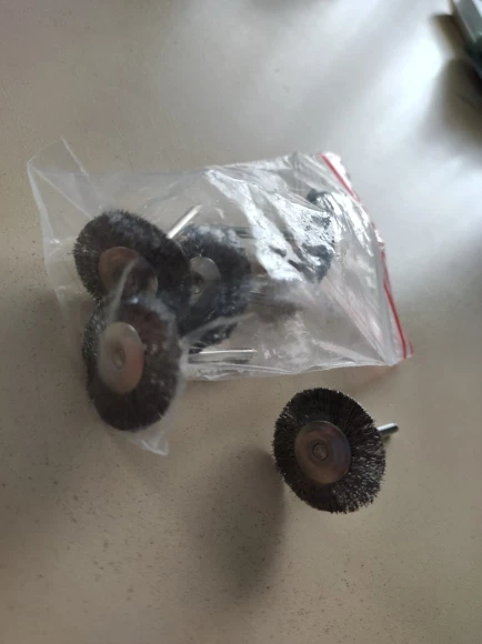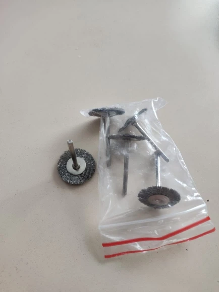С момента отправки до получения в Беларуси 56 дней. Упаковка стандартная - п/э пакетик в пупырчатом конверте. Диаметр хвостовика 3 мм. Диаметр колеса соответствует - 25 мм. Качество хорошее. Интересно, что два колеса со щетинками помягче, а три - немного жёстче. Но это и хорошо, т.к. поверхности для обработки тоже разные. Покупкой вполне доволен.
