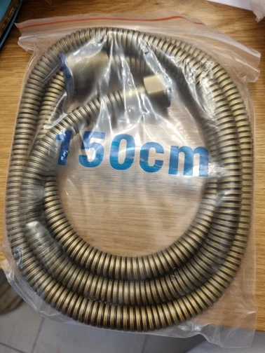 Доставка быстрая в МО. Шланг, который получил я, имеет цвет натёртой латуни, то есть с проблесками золота. Это не совсем античная латунь. Эластичность шланга на 4, что в дальнейшем может сказаться на эксплуатации. К тому же в шланге нет сеточки, как на фото магазина. Надеюсь, мой отзыв кому-то пригодится. Всем удачных покупок! Не забывайте про кешбек.