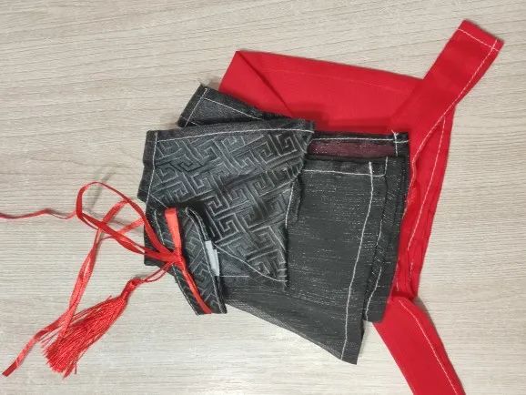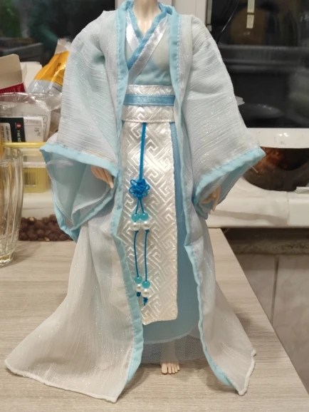 Хороший костюм, состоит из четырёх частей. Очень своеобразно смотрится та часть, что должна образовывать что-то вроде жилета, но весь костюм в сборке выглядит весьма прилично. Это не первый мой заказ тут и я поддержу предыдущих покупателей: костюм Лань Чжаня лучше.