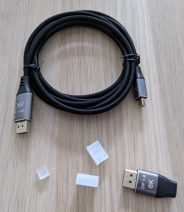пришёл уже после диспута по сроку доставки. проверить не могу, т.к. внезапно на монике не оказалось DP. по ощущениям - добротный кабель. единственное что плохо - miniDP вставляется в переходник только наполовину. зазор очень большой получается.