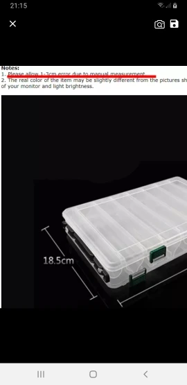 Качество пластика хорошее, доставка долгая. Внутренний размер отделов чуть меньше заявленного (в длину 18см воблеры не влезают), максимум 16-16,5 см. Один из пяти пришёл с отломанным кусочком пластика.