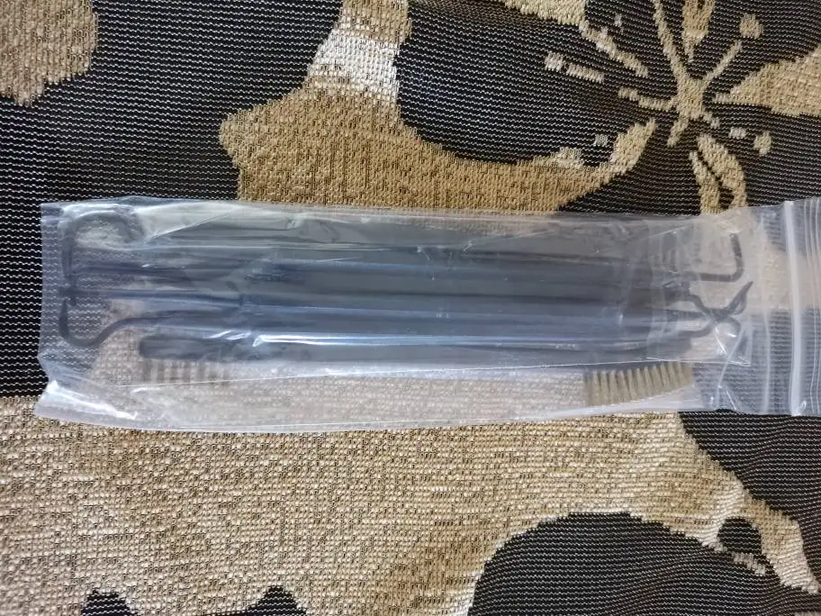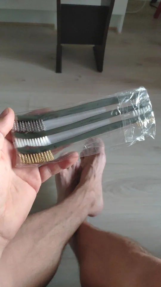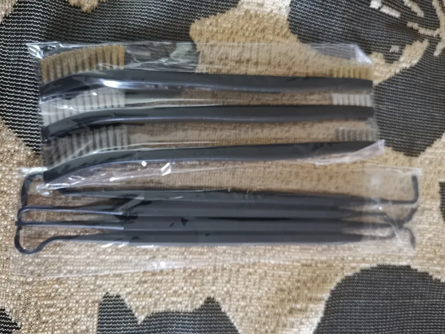 Крючки пластиковые, но довольно крепкие, щетки жесткие с тонкой щетиной. Отличный набор для чистки