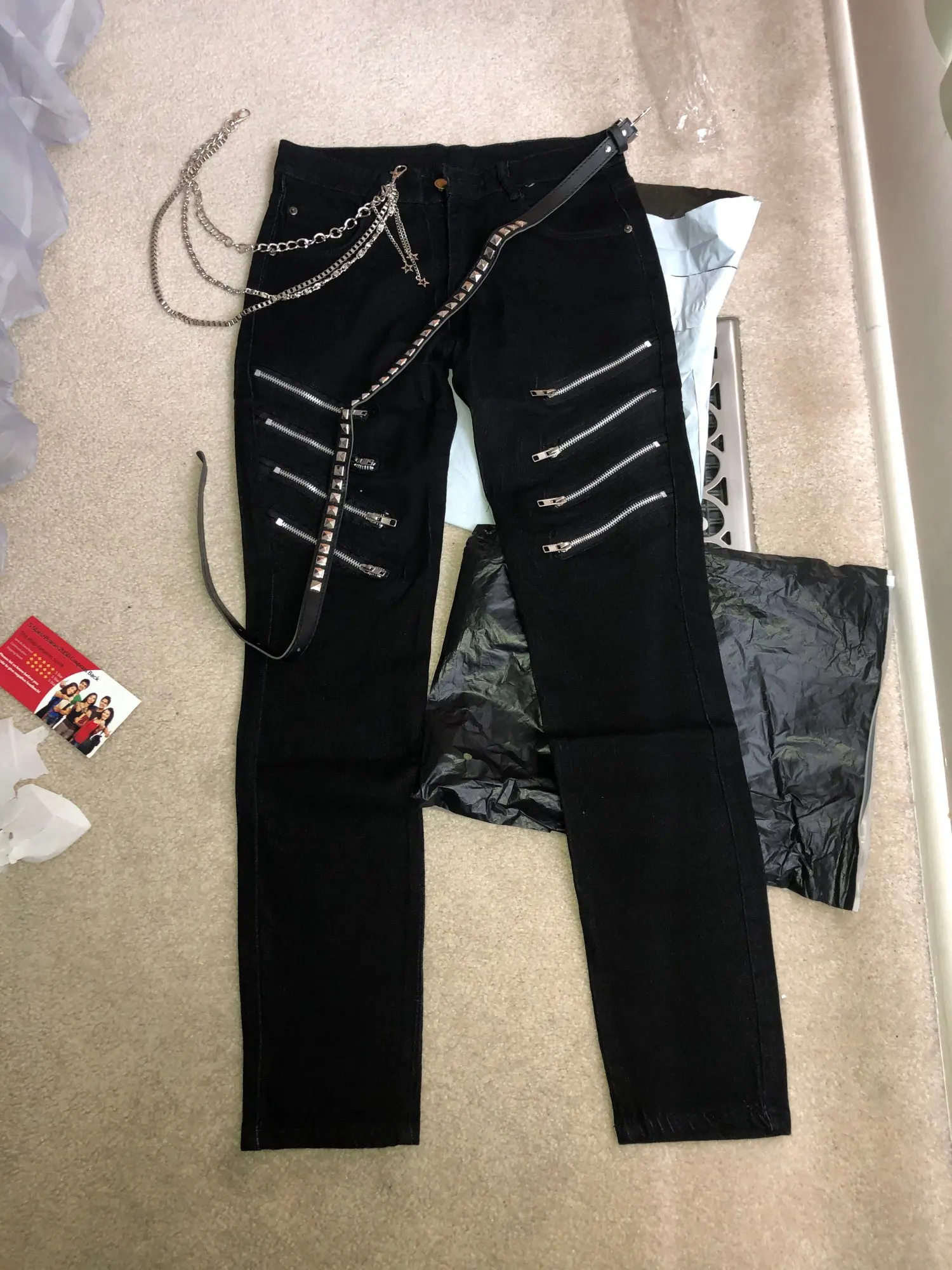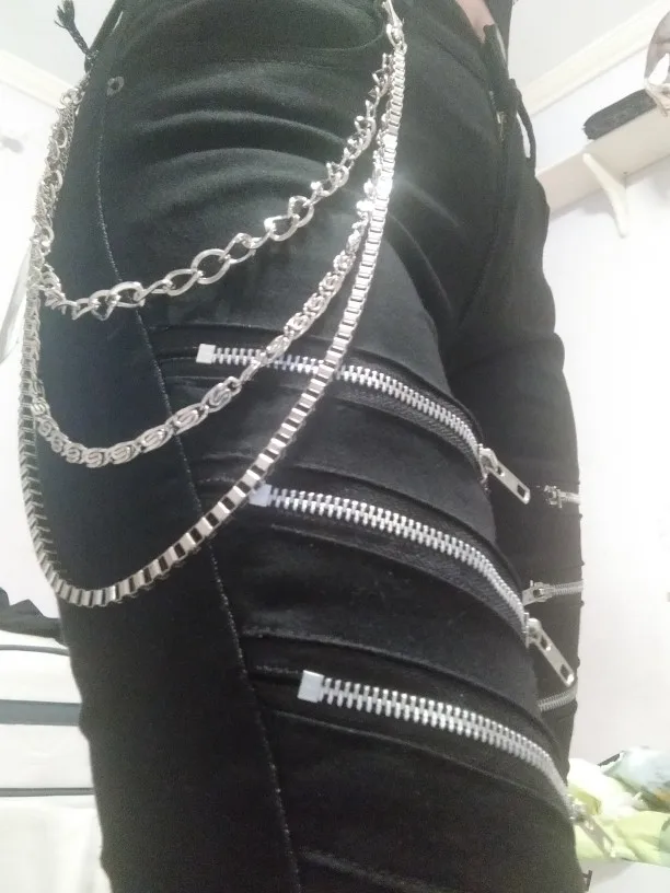 Джинсы мужские зауженные, Стрейчевые брюки-скинни, на молнии, с цепочкой, в стиле панк, модные джинсы в Корейском стиле, черные, на осень