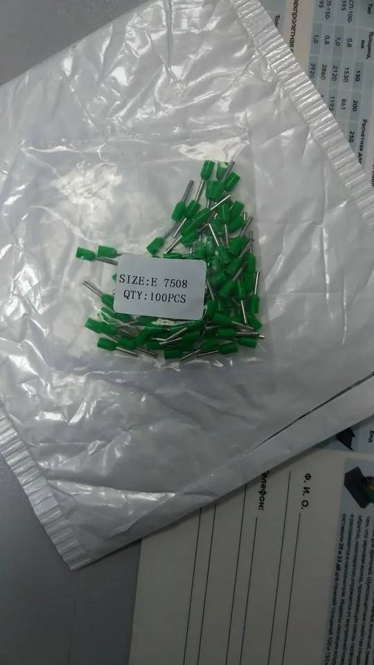E7508 100 Шт./упак. Трубки изоляционные Изолированные терминалы 0.75MM2 Кабель Провод Разъем Изоляционные Обжимной Вывод Разъем E-