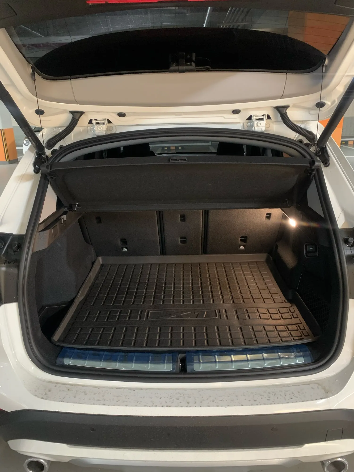 Жесткий коврик, материал похож на мягкую пластмассу. Транспортируется сложенным в четыре раза, соответсвенно жду когда выправиться! В целом все устроило!
