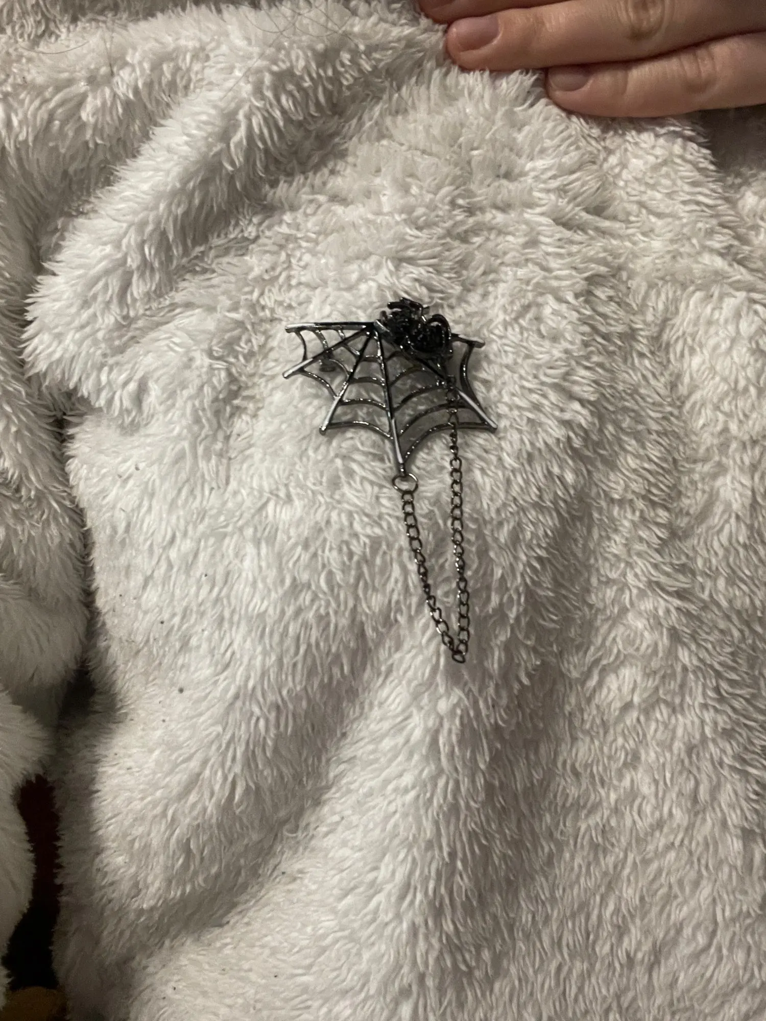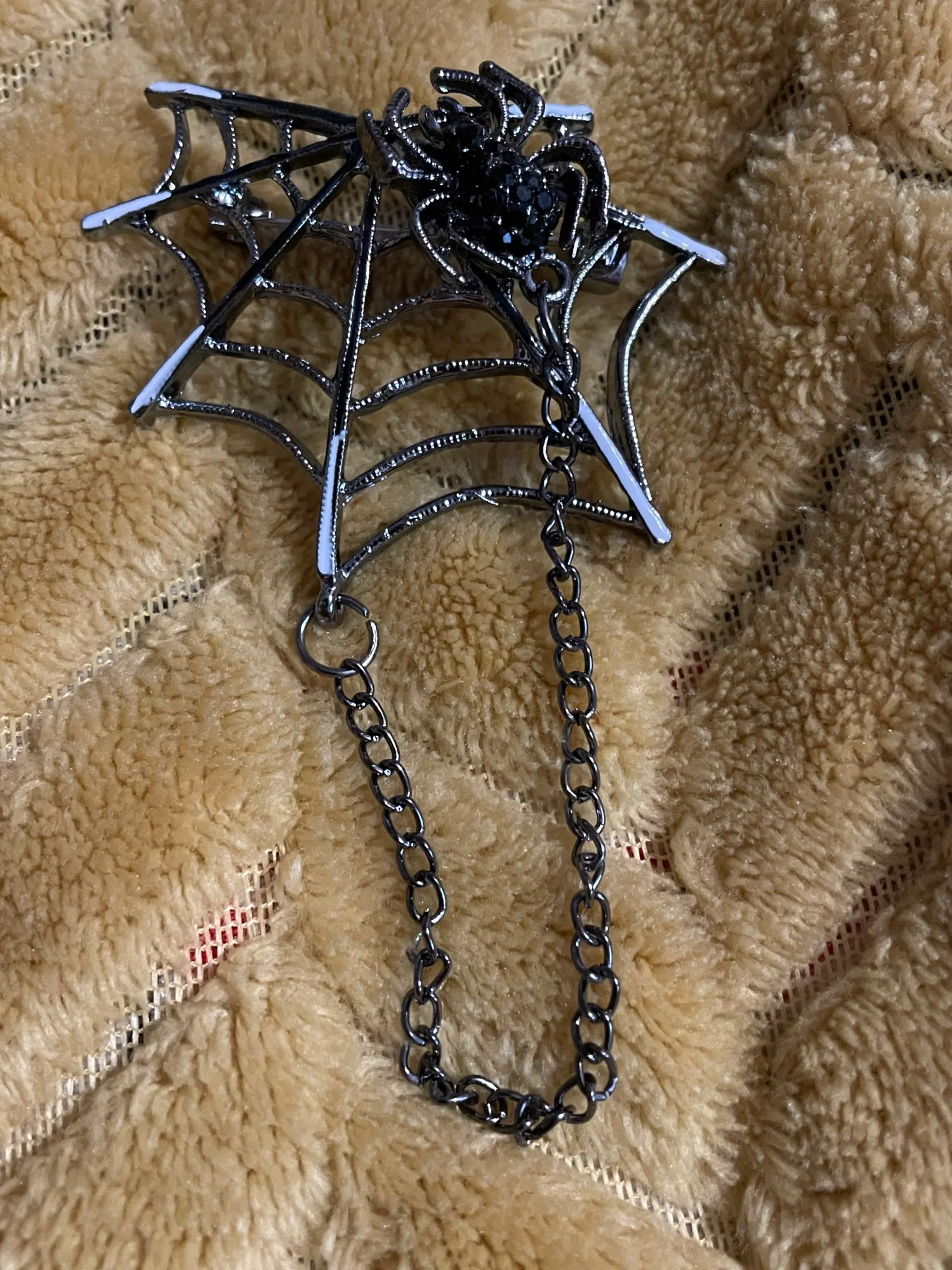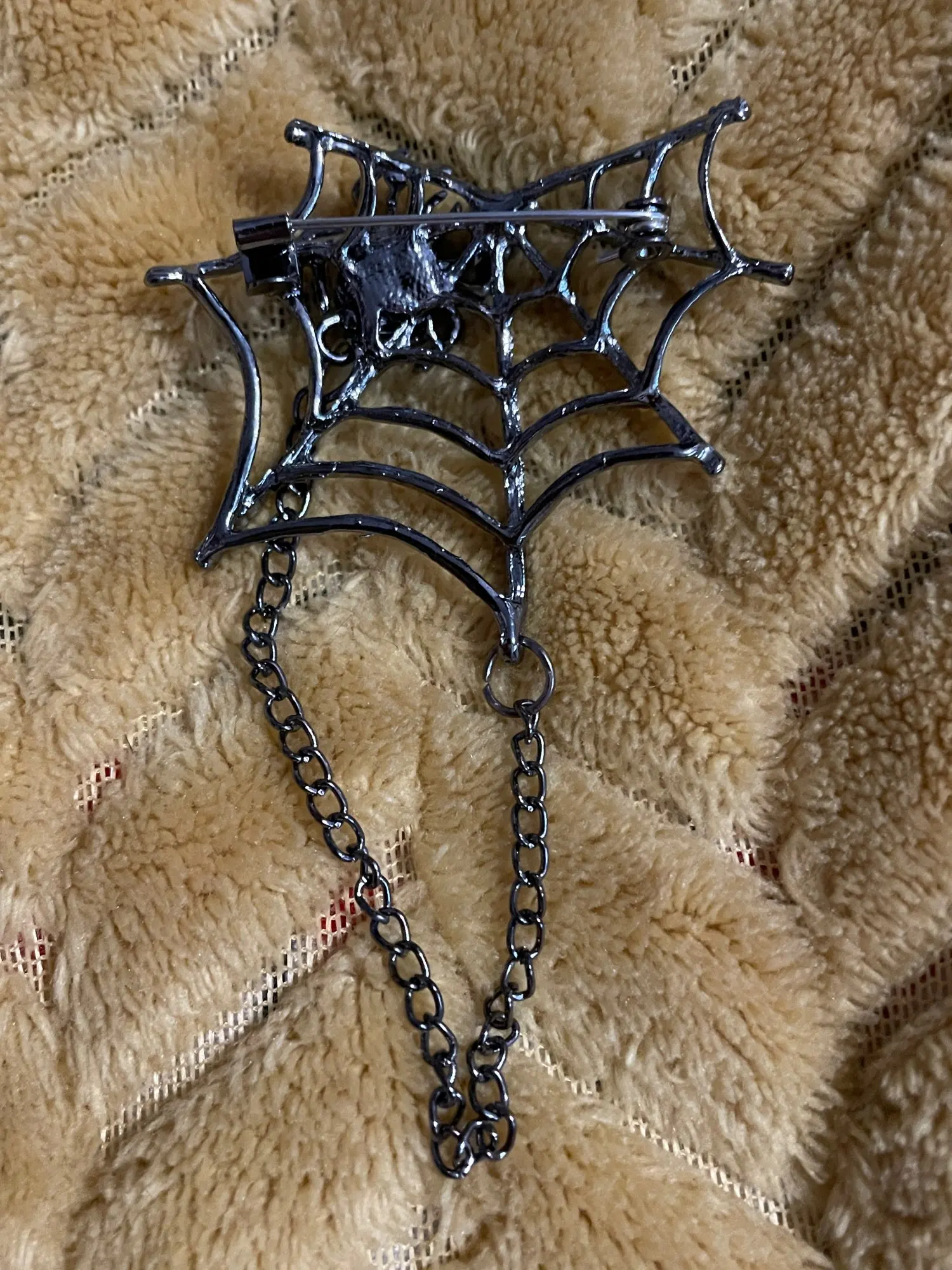 Красивая увесистая брошь. На моём экземпляре имеется небольшой брак (прерывистая паутина), жаль, но оценку снижать не буду