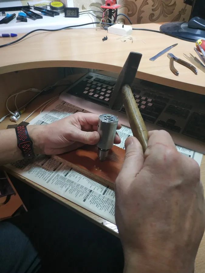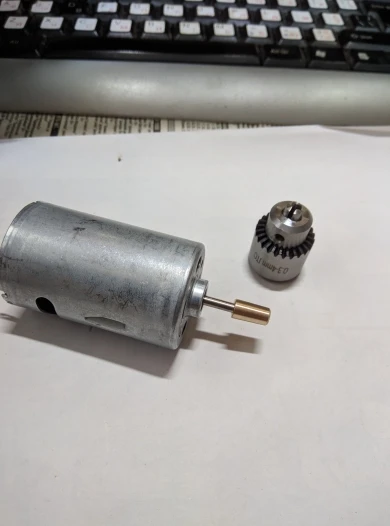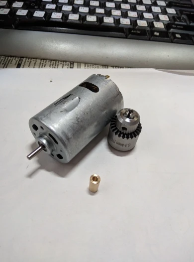 Моторчик отличный. Чтоб одеть патрон на вал, надо молоточком постучать с обратной стороны, уперев патроном в досточку. Патрон не бьёт, свёрла зажимает хорошо. Вобщем я покупкой доволен