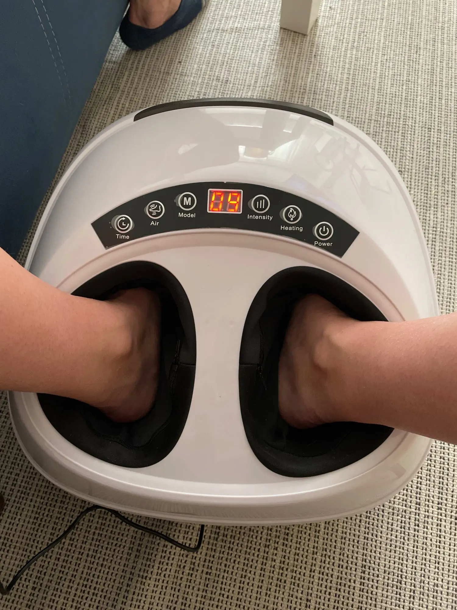Ждала аж 2,5 месяца. Дождалась! Это мой второй массажер. Первый прослужил год, но его испортили коты. По сравнению с предыдущим, этот мне понравился больше. Во- первых, у него съёмный шнур питания, во-вторых, внутренние вставки из трикотажа в выемках для ног отстёгиваются, а значит, их можно будет стирать. У предыдущего массажера этого не было. В остальном они очень похожи. Массирует отлично. Меню управления "для дураков", все понятно.) Продавец тоже проявился неплохо. Отвечал на все вопросы, предоставлял информацию при необходимости. Покупала в дни распродаж за 4 тыс.руб. Рекомендую всем, очень хорошая машина для здоровья ног. Надеюсь, на этот раз прослужит долго.