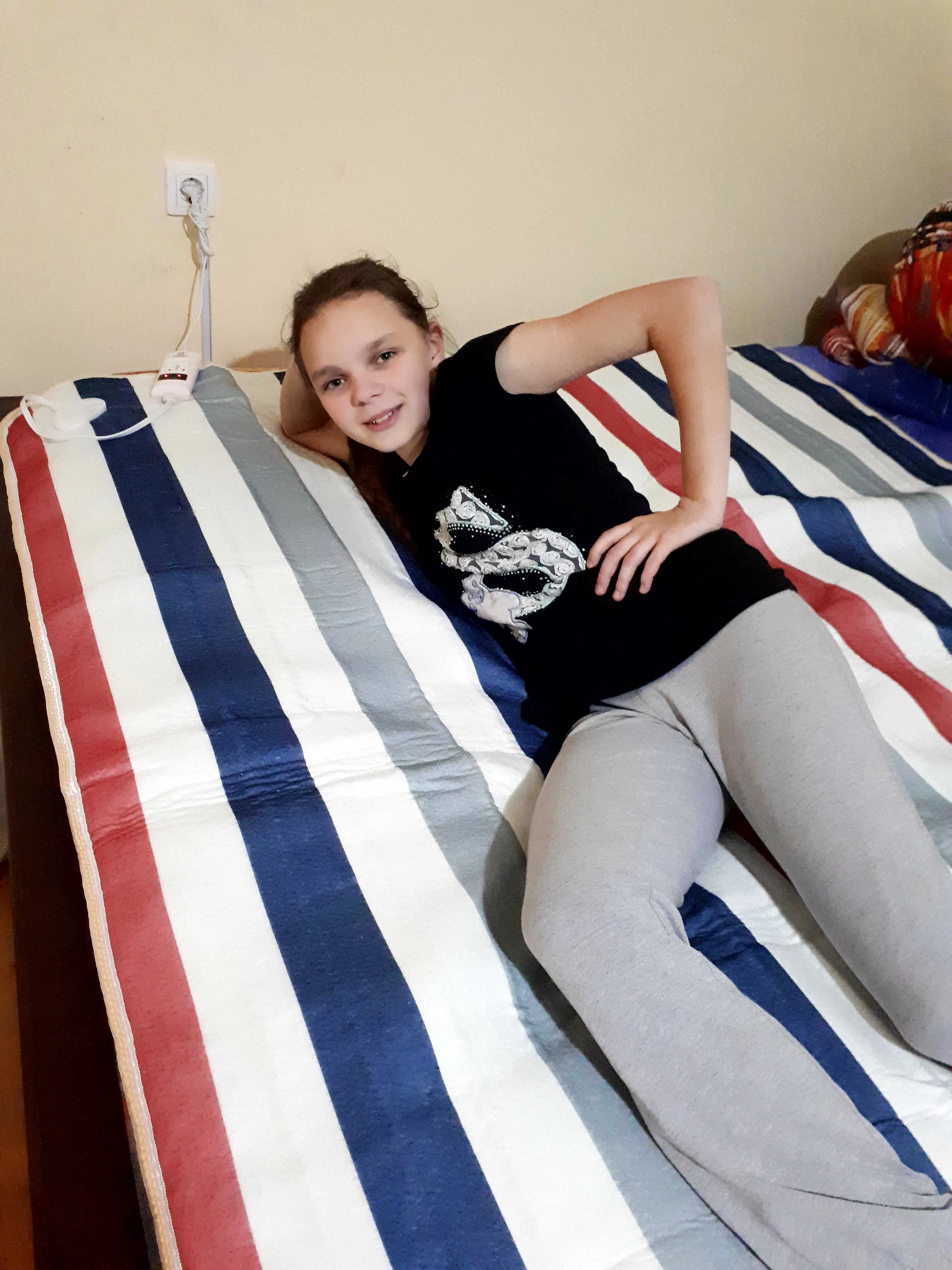 Товар пришел очень быстро, супер. Цвет немного не тот - полосатенький, а так все хорошо. Греет не сильно.