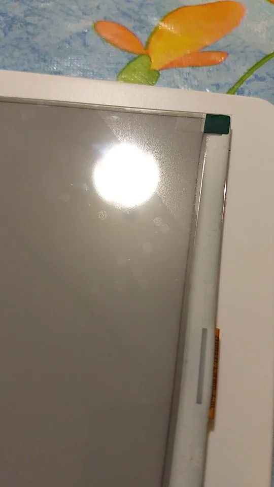 Экран явно вскрывался. Такое ощущение, что не новый. Пылинки и видно, что защитную плёнку налепили руками, не на заводе. Сзади наклейка содрана.