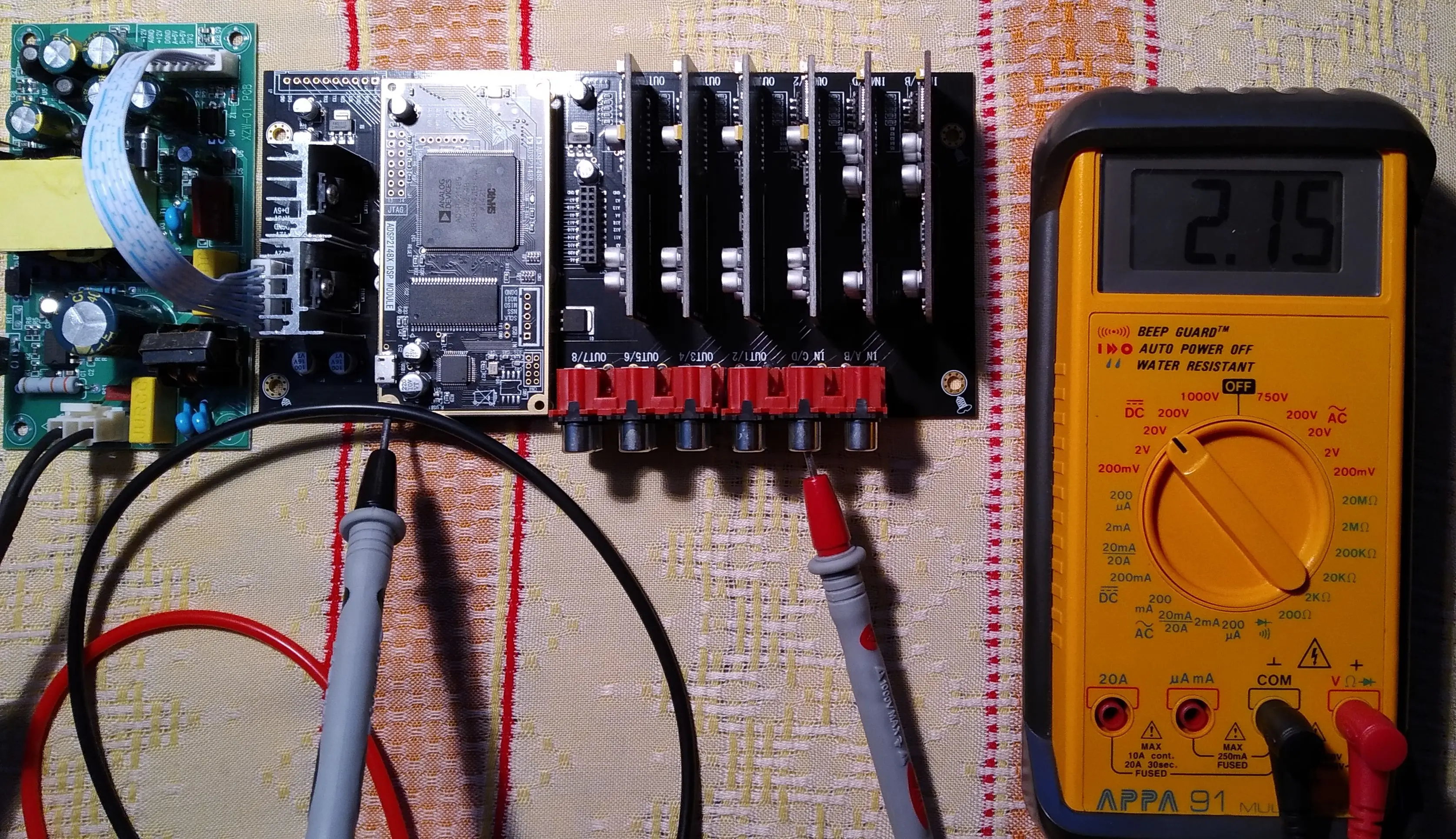 Комплект шёл меньше месяца, пришёл целым. Общение с продавцом понравилось, от него я получил необходимые консультации. Так же ПО и прошивки для работы с электронным кроссовером. Правда, по непонятной причине греются все платы ЦАП. При этом не понятно какая деталь греется, так как нагрев идет по центру платы, а детали холодные. Возможно проблема в разводке платы и греются сами дорожки. Так же при включении появляется постоянное напряжение на всех четырёх входах, на платах АЦП. В остальном нареканий нет. Качество изготовления хорошее. С ПО кроссовер работает корректно, всё настраивается. ОУ на всех платах ЦАП/АЦП применены mc33078. Платы ЦАП/АЦП поддерживают балансное подключение всех входов и выходов. Так что можно сразу применять этот набор в профессиональном сегменте. Продавец очень понравился! Рекомендую продавца, буду заказывать еще!