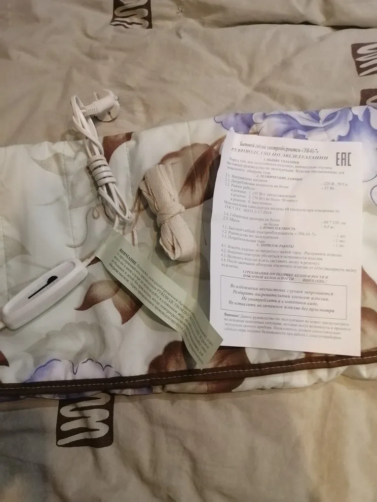 Спустя месяц после использования электропростыни хочу сказать вам огромное СПАСИБО, все четко и по инструкции, никаких дифектов!!! и первый и второй режим хорошо обогревает.. легко ложиться на матрац. я довольна.