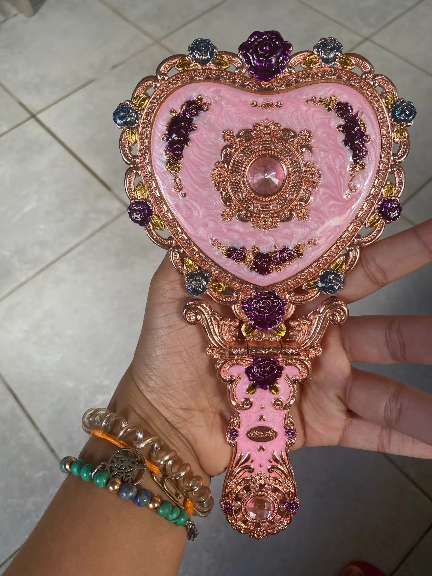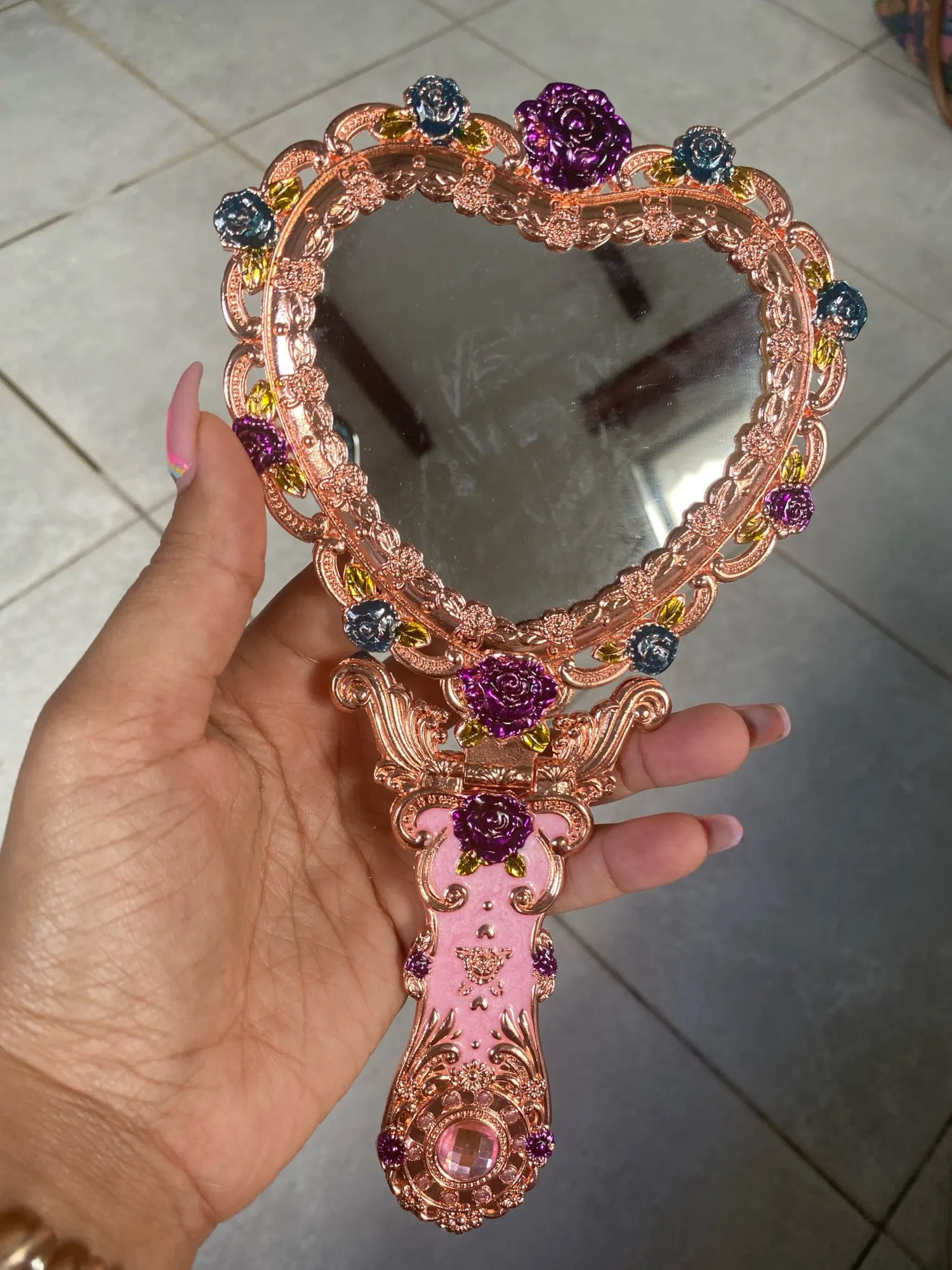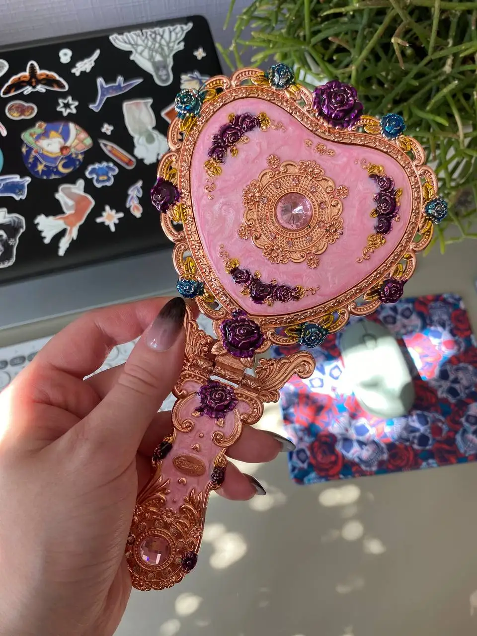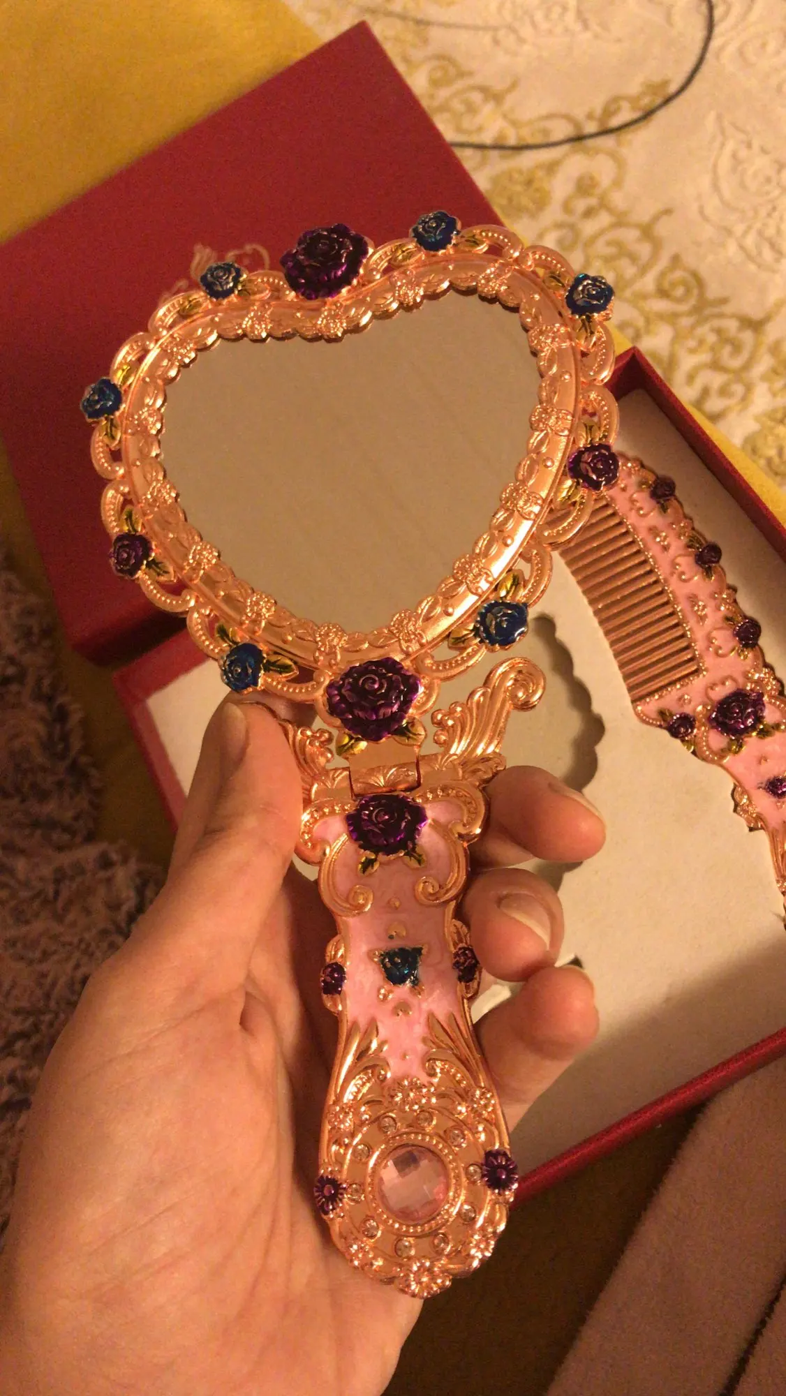 Европейское винтажное ручное зеркало в форме сердца, зеркало для макияжа, карманное зеркало с рамкой, подарок для девочки J034