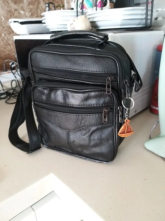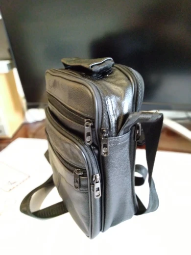 Сумка пришла до Нижнего за 9 дней! Фантастика. Отслеживание на всём протяжении пути. Посылка была упакована в пакет без пупырок, сама сумка была завёрнута в пупырчатый целлофан. Тем не менее всё приехало без каких-либо деформаций и повреждений. Брал самую большую сумку. Всё соответствует описанию. По материалу вроде кожа, я в этом не очень разбираюсь. Длина ремня 147 см. На мой рост 183 в притык. Молнии застёгиваются с право налево, то есть в застёгнутом состоянии все собачки на левой стороне. У всех моих предыдущих сумках было наоборот. Рефлекторно не могу нащупать собачку. Это единственно, что просто выбешивает. А так в целом покупкой доволен. Продавец тоже красава. К покупке рекомендую однозначно.