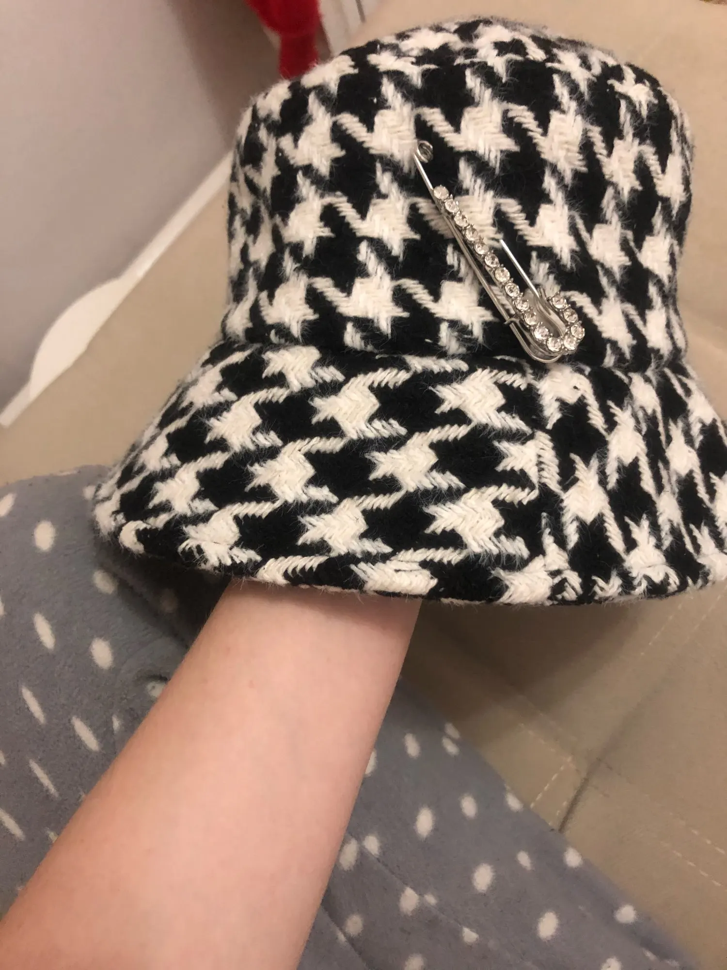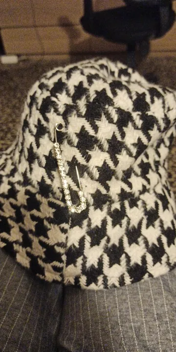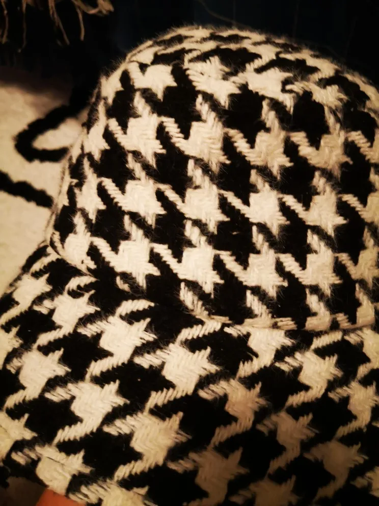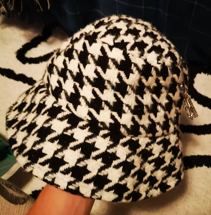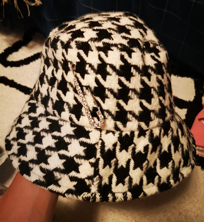 Fibonacci зимняя Панамы стиле из натуральной кожи для женщин; Сезон шляпа от солнца Модные женские Элегантные плед шапки Стразы Pin свободного покроя с рисунком «гусиные лапки» кепки