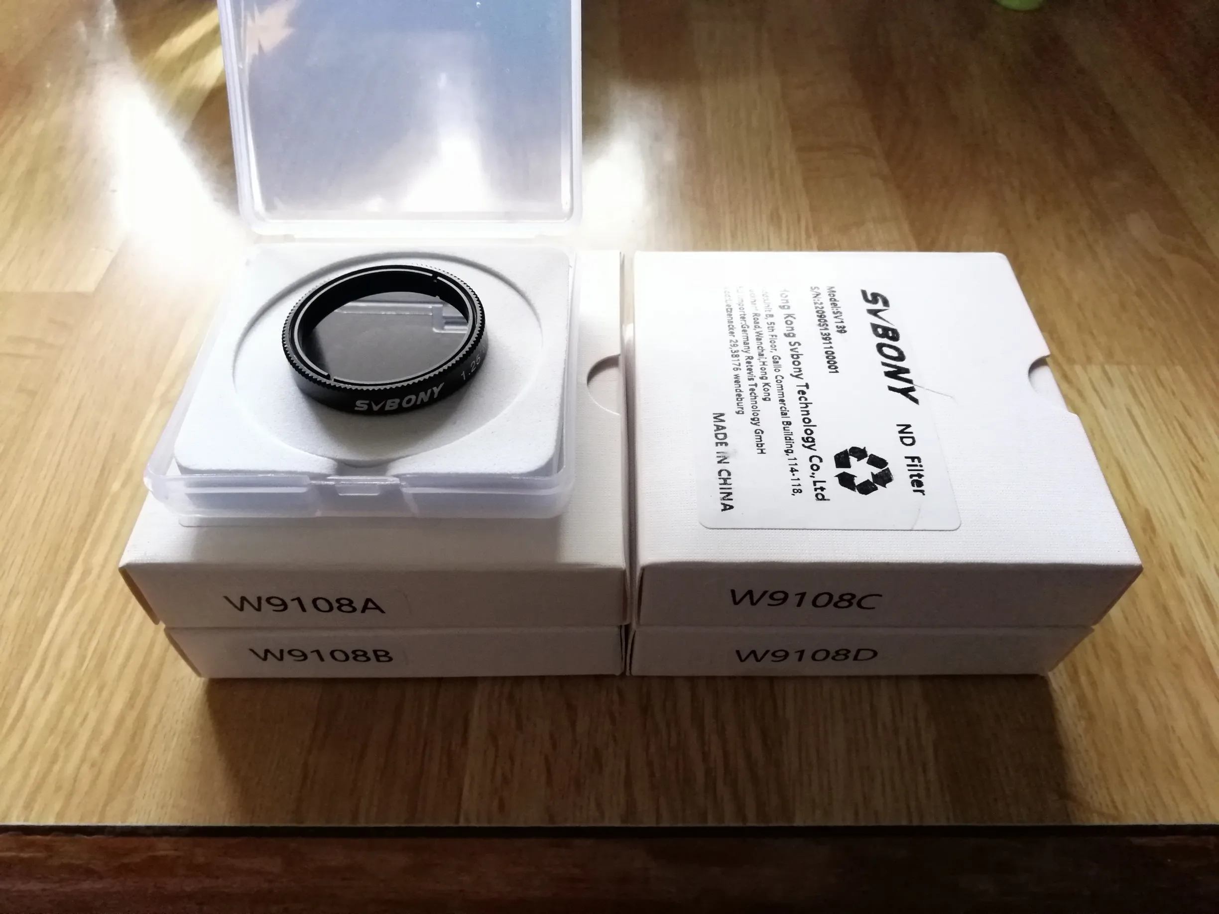 Упаковка прямо подарочная учитывая цену фильтра. Накрутить на него что-то еще не получится, кольцо закрывает всю резьбу. По спектру судя по диску равномерный, сравнил с фильтром для фотика от Hoya. Цвета вроде не искажает.