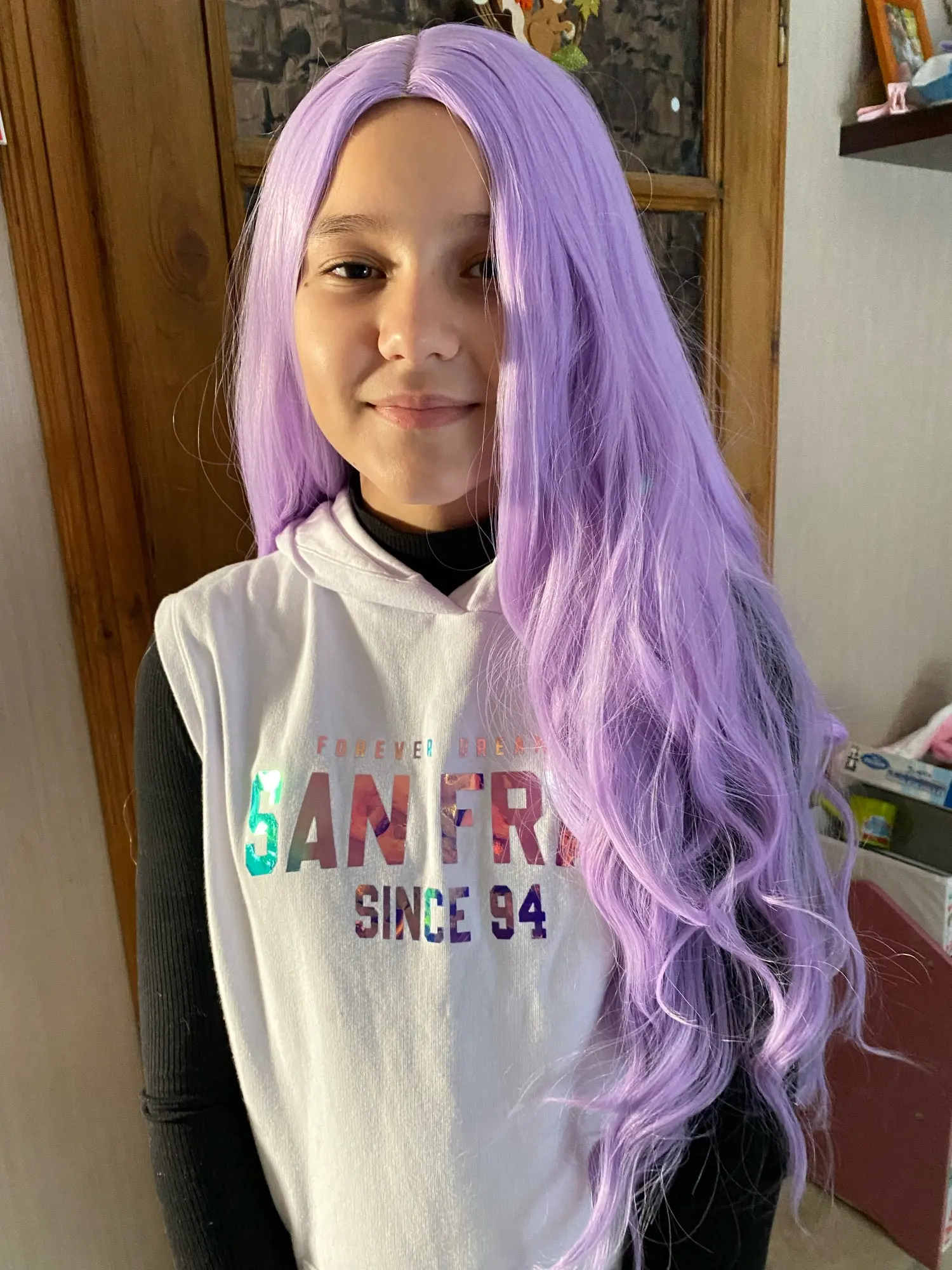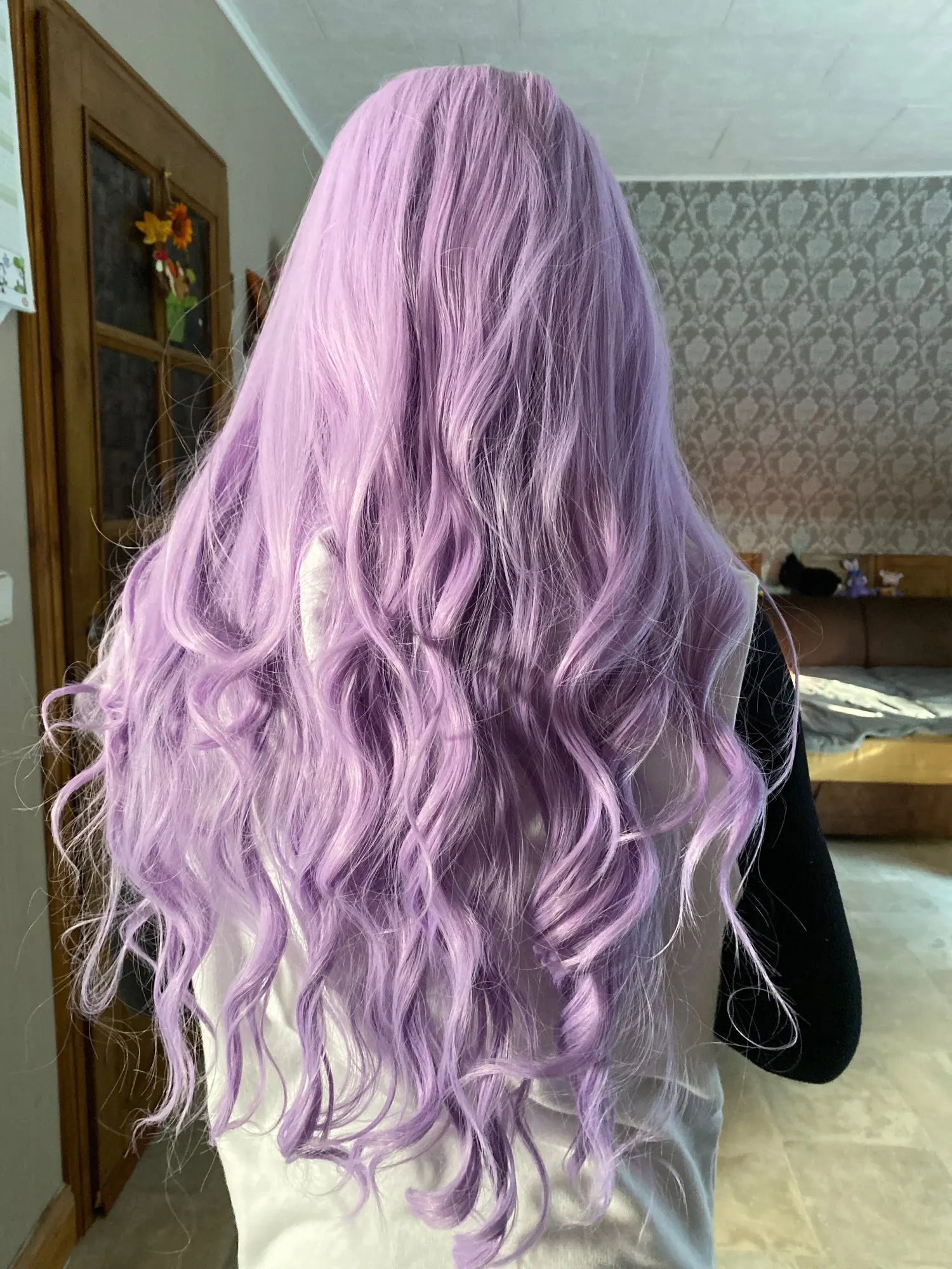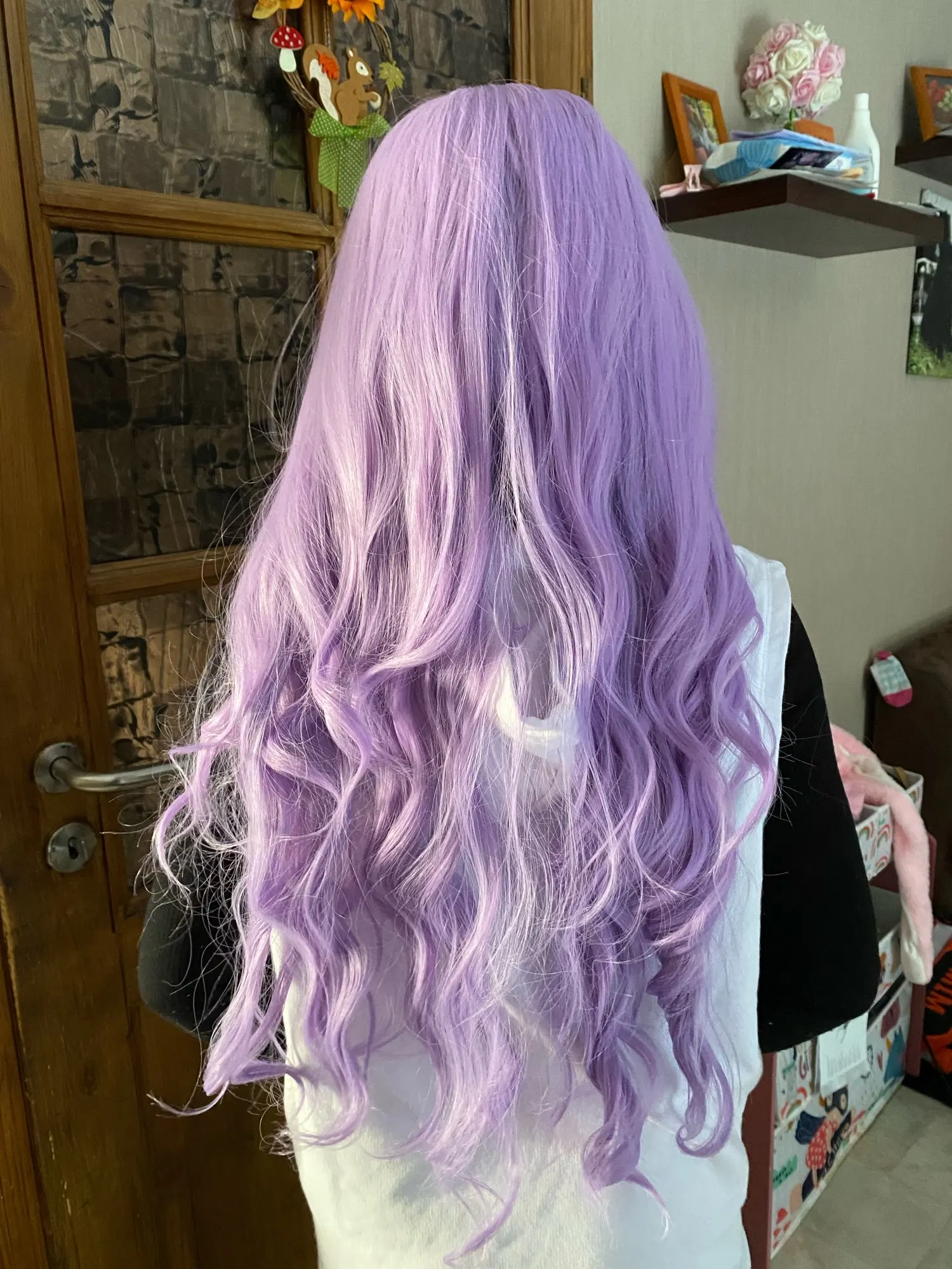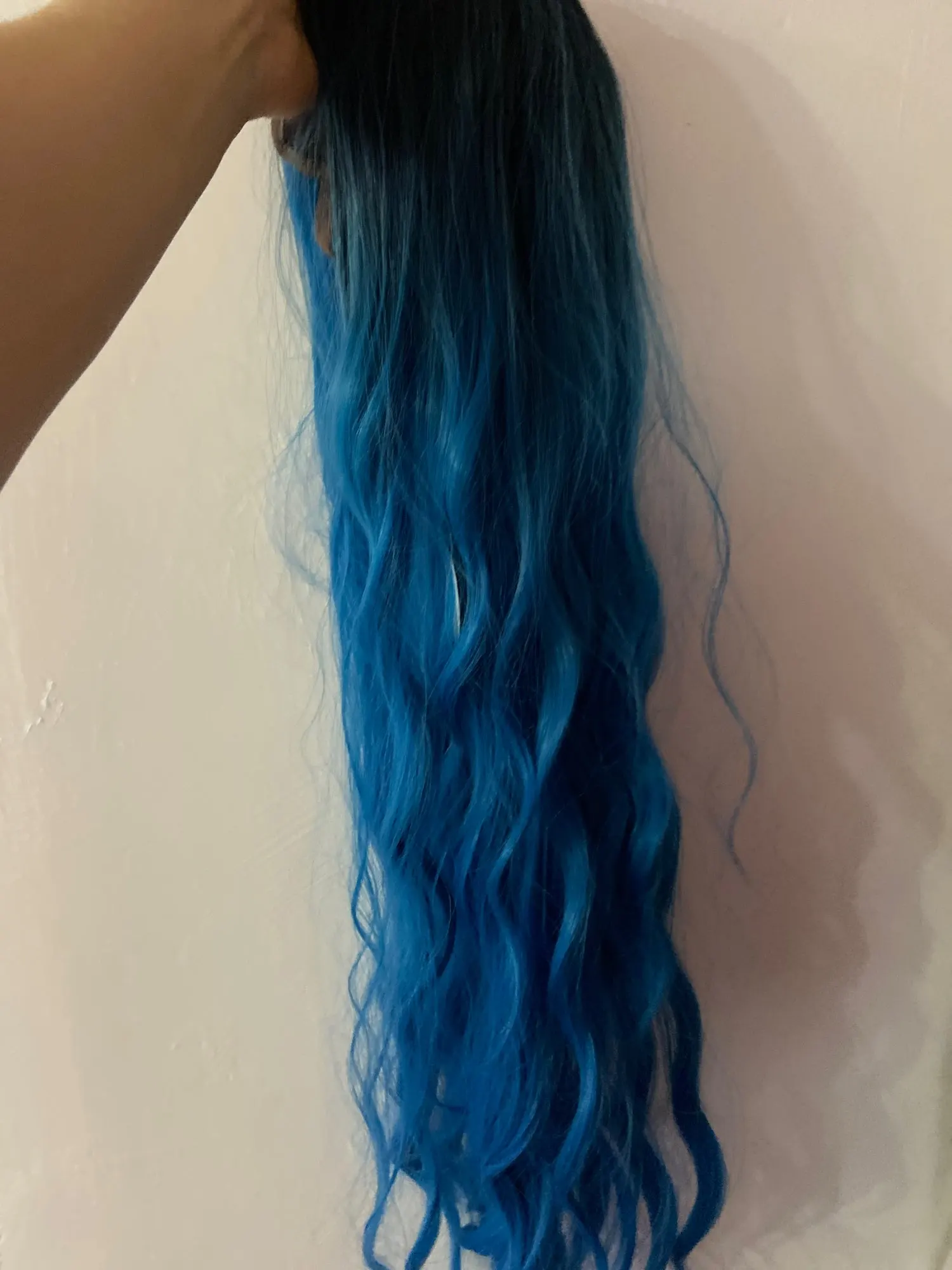 Фиолетовый с эффектом деграде (переход от темного к волнистые натуральные синтетические парики для Для женщин повседневные термостойкие волокна Косплэй вечерние Цветные волосы женский парик