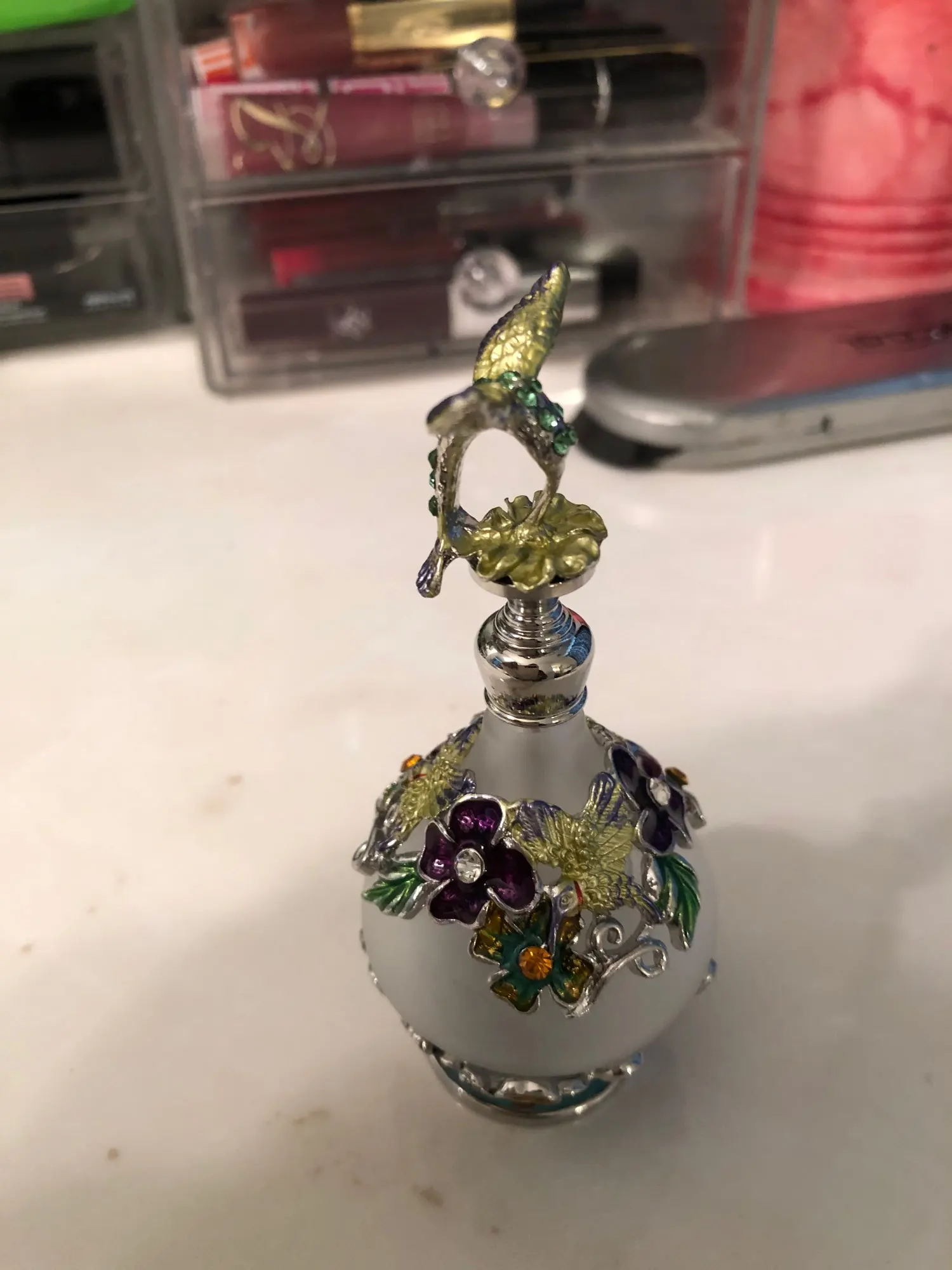 Флакон парфюмерный многоразовый из винтажного стекла, 25 мл, с фигуркой колибри