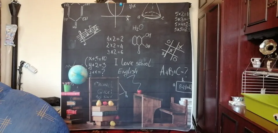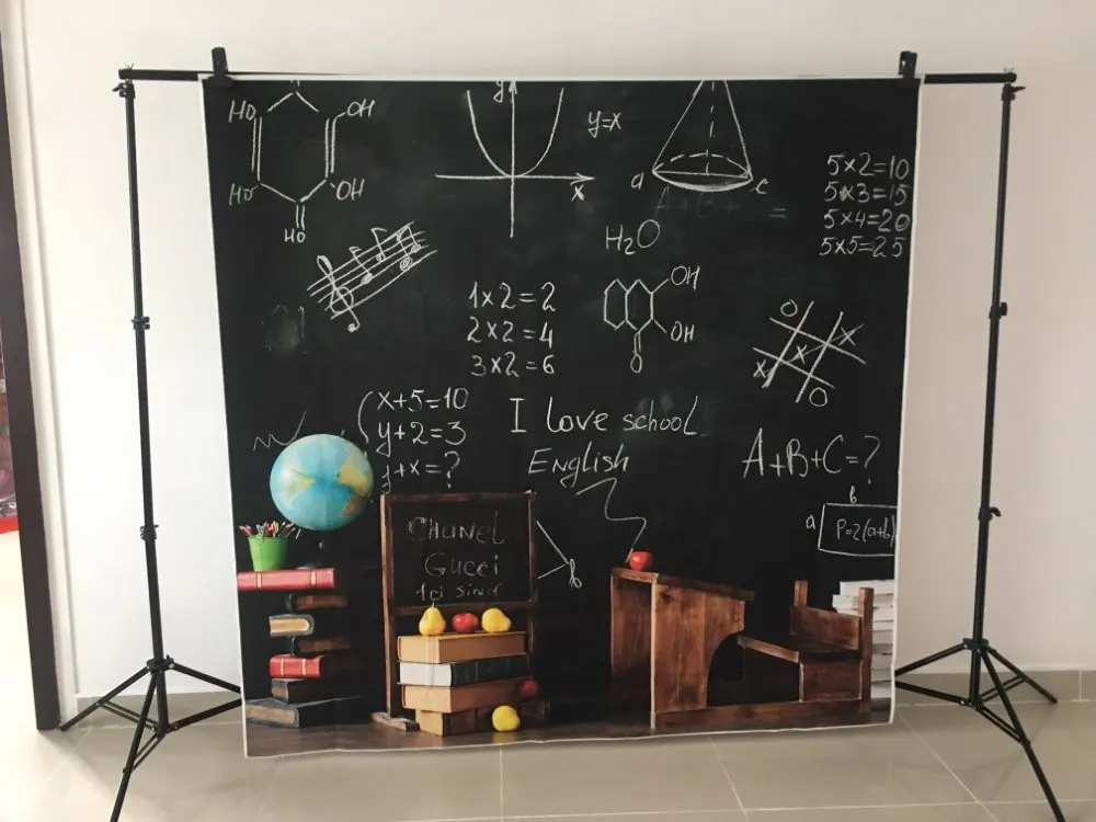 Фон для фотосъемки Рисунок доска рисунок обратно в школу Меловые глобусы книга обучение ребенок Фото фон фотостудия
