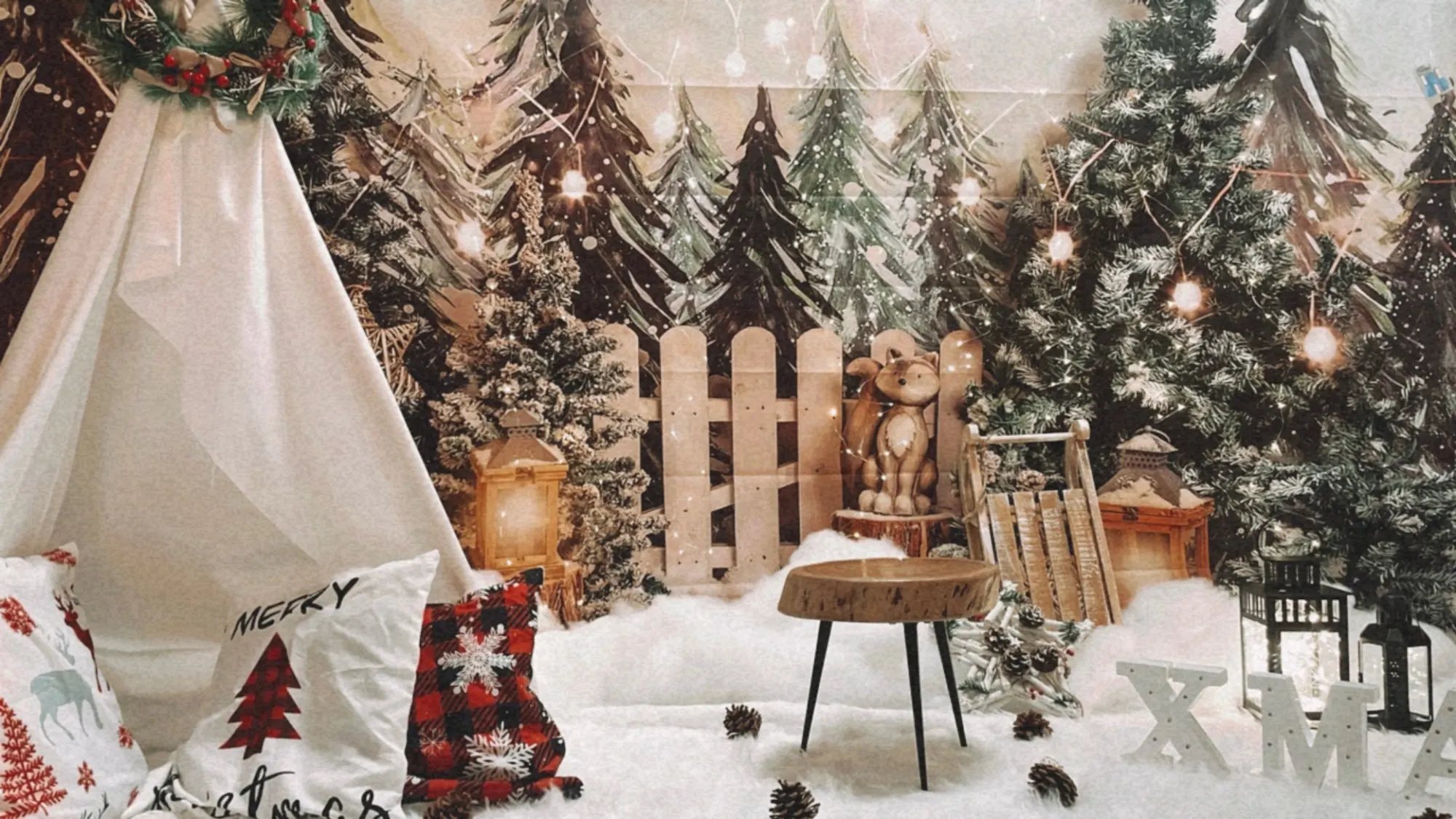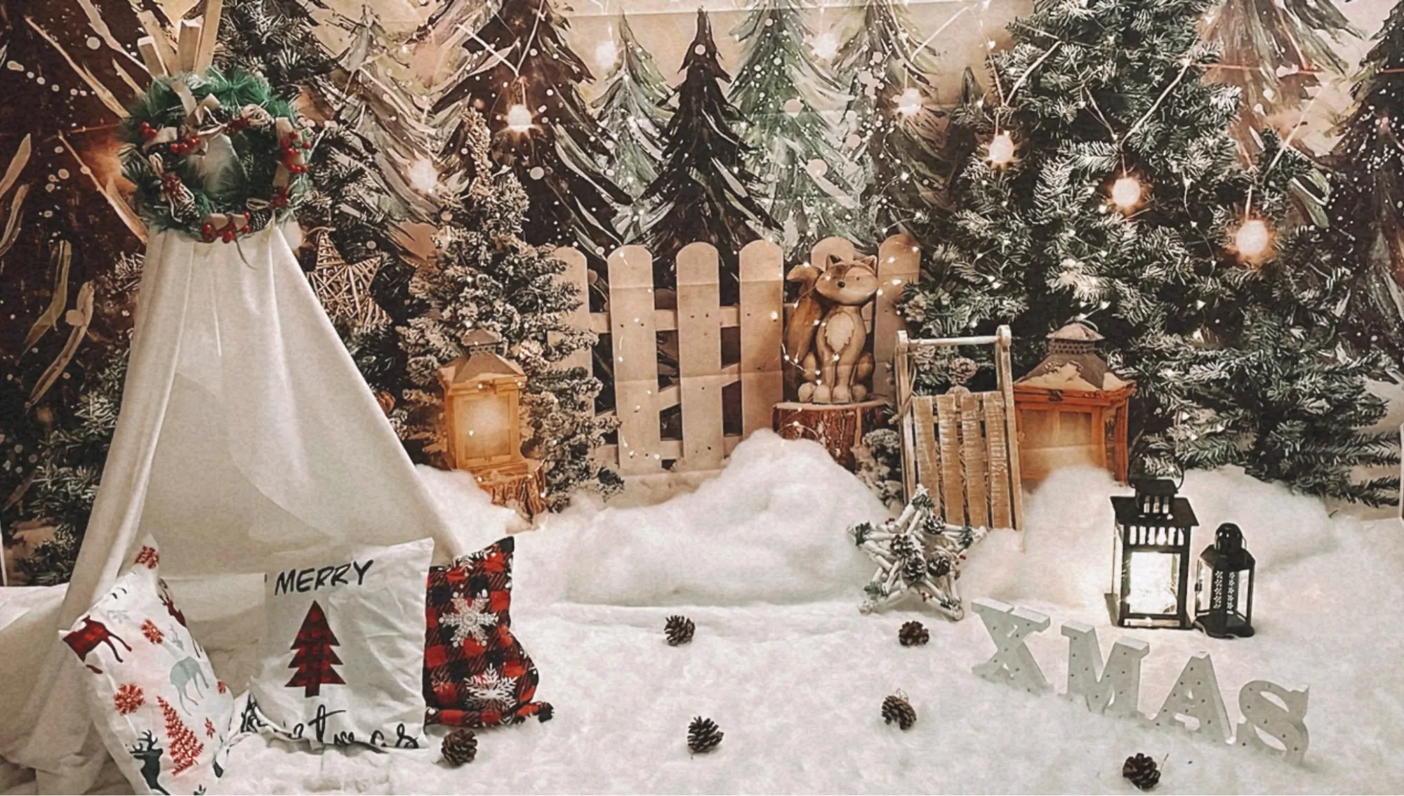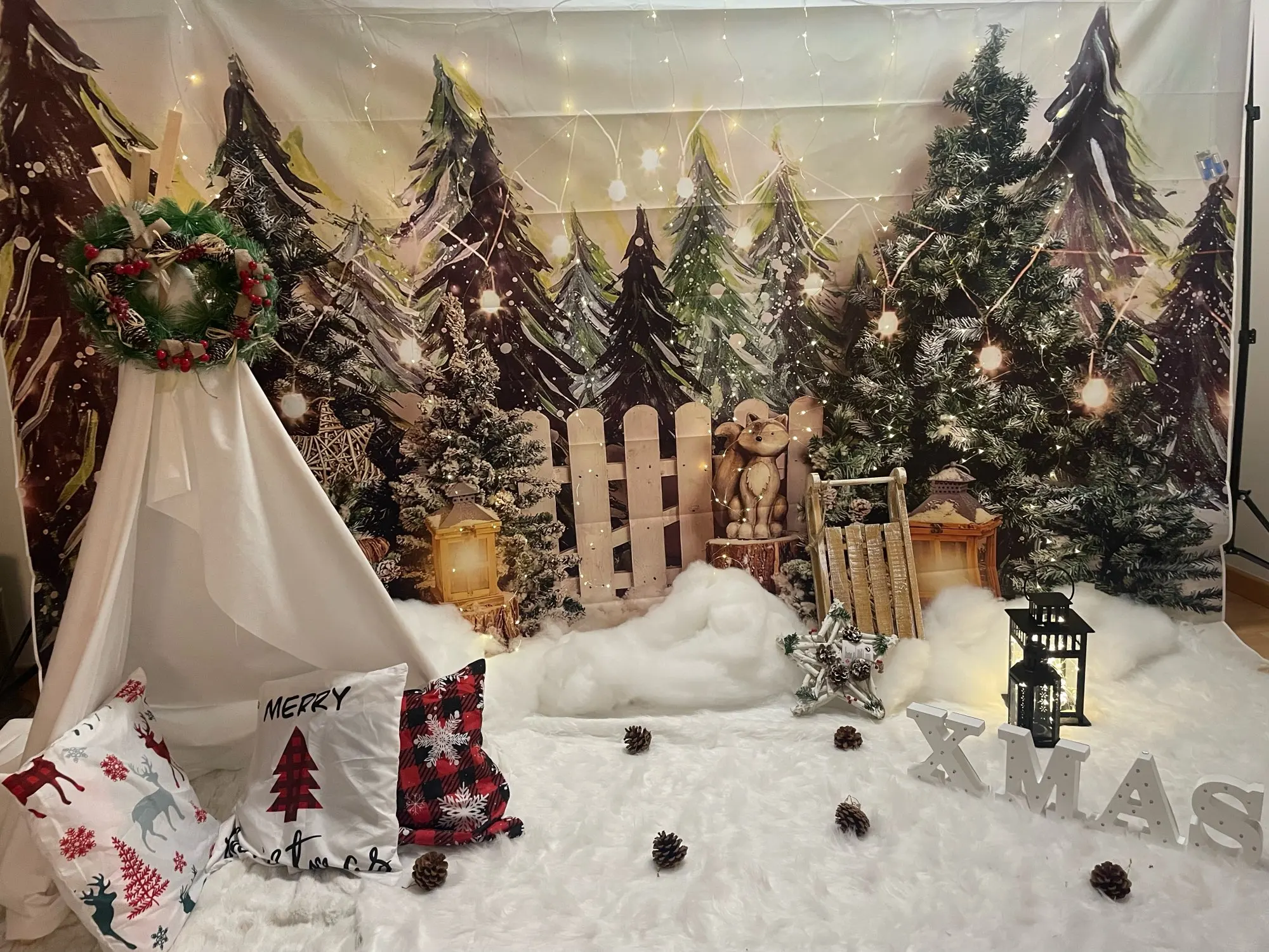 Фотофон с изображением рождественской елки и камина для детской портретной фотосъемки для фотостудии