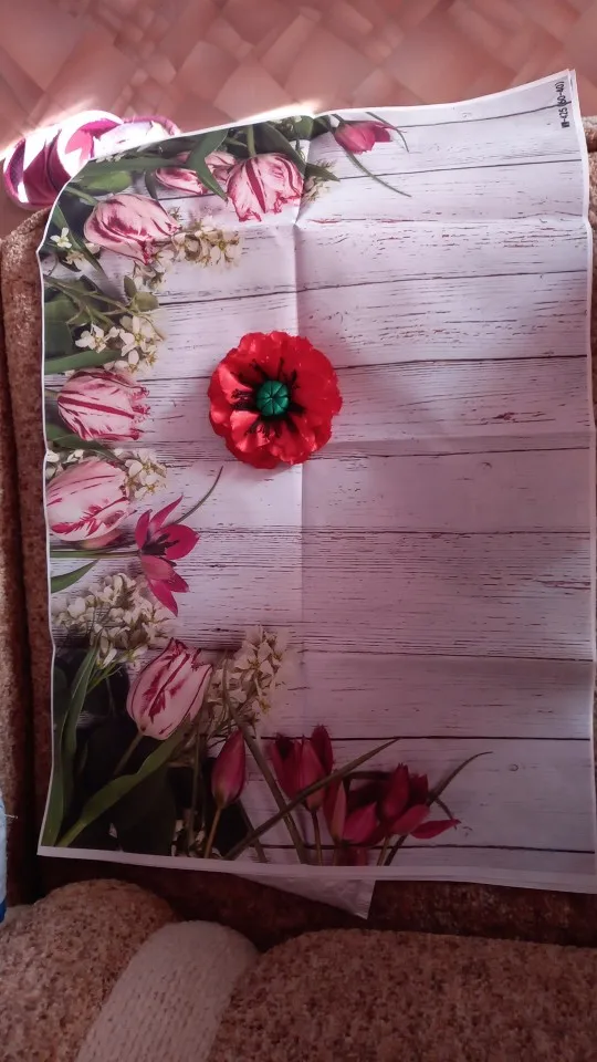 Товар пришёл быстро в течение 2х недель в Ленинградскую область. Свернутый в пакете, поэтому остались швы не разгладить, но не криминально. Чистый, яркий, красивый, без запаха. Спасибо огромнейшее, Рекомендую