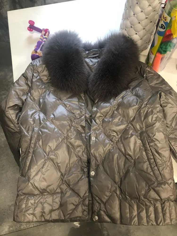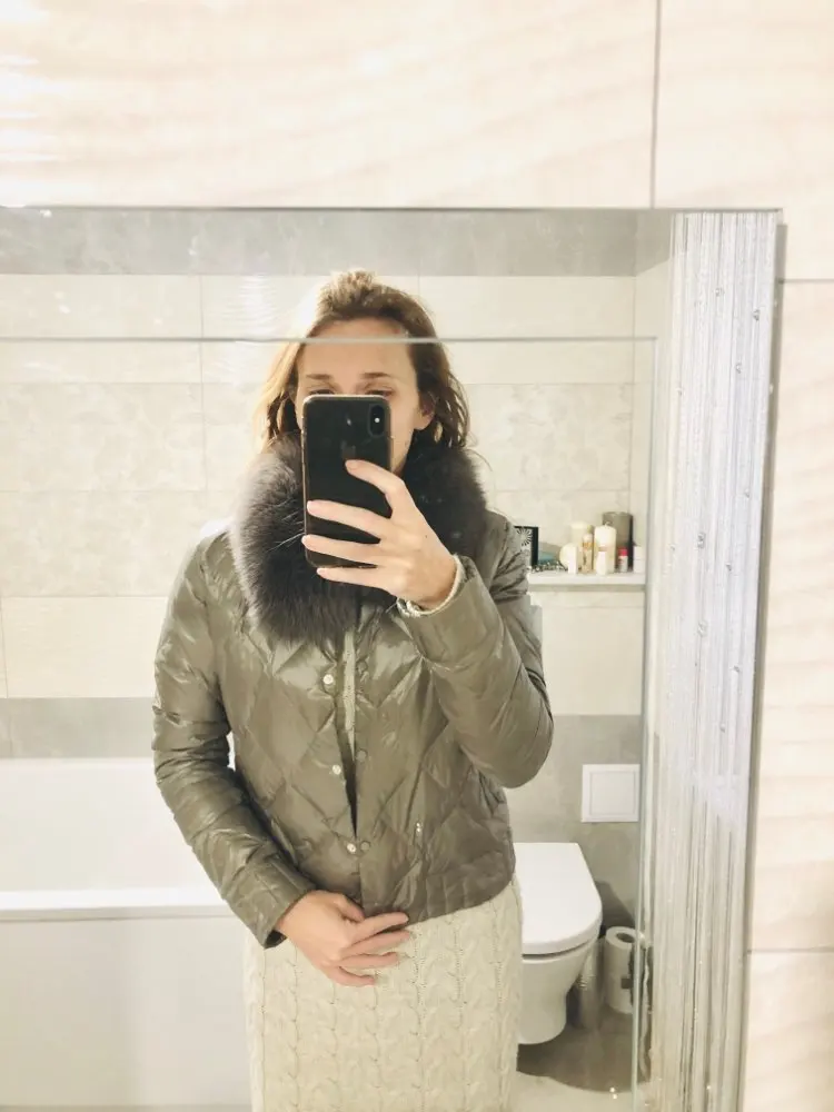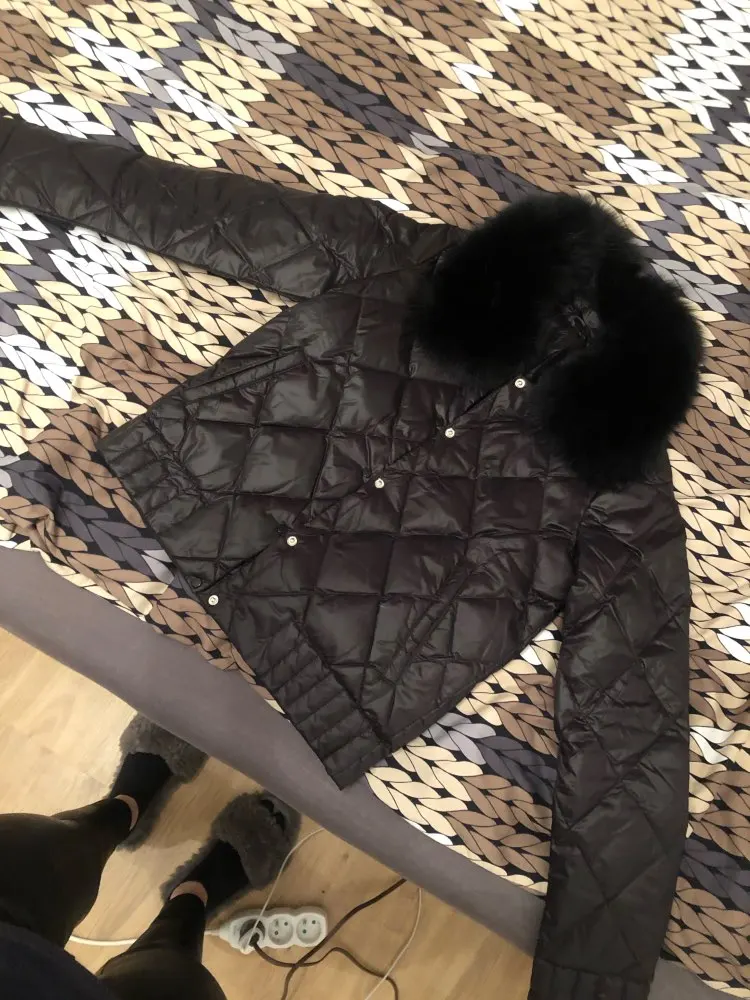 FTLZZ женский пуховик с натуральным воротником, зимний теплый ультра-светильник, короткая куртка, белая парка на утином пуху, элегантная верхн...