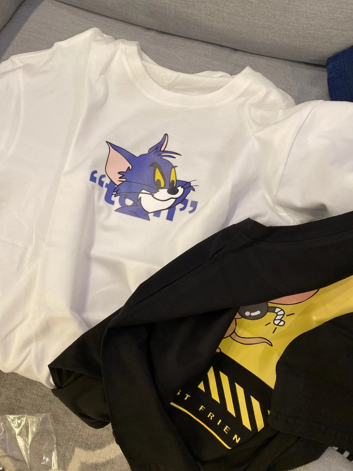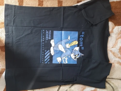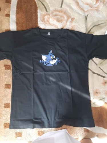 Футболка для девочек и мальчиков, Свободный Топ с мультяшным принтом для пар и подруг, черная, на лето