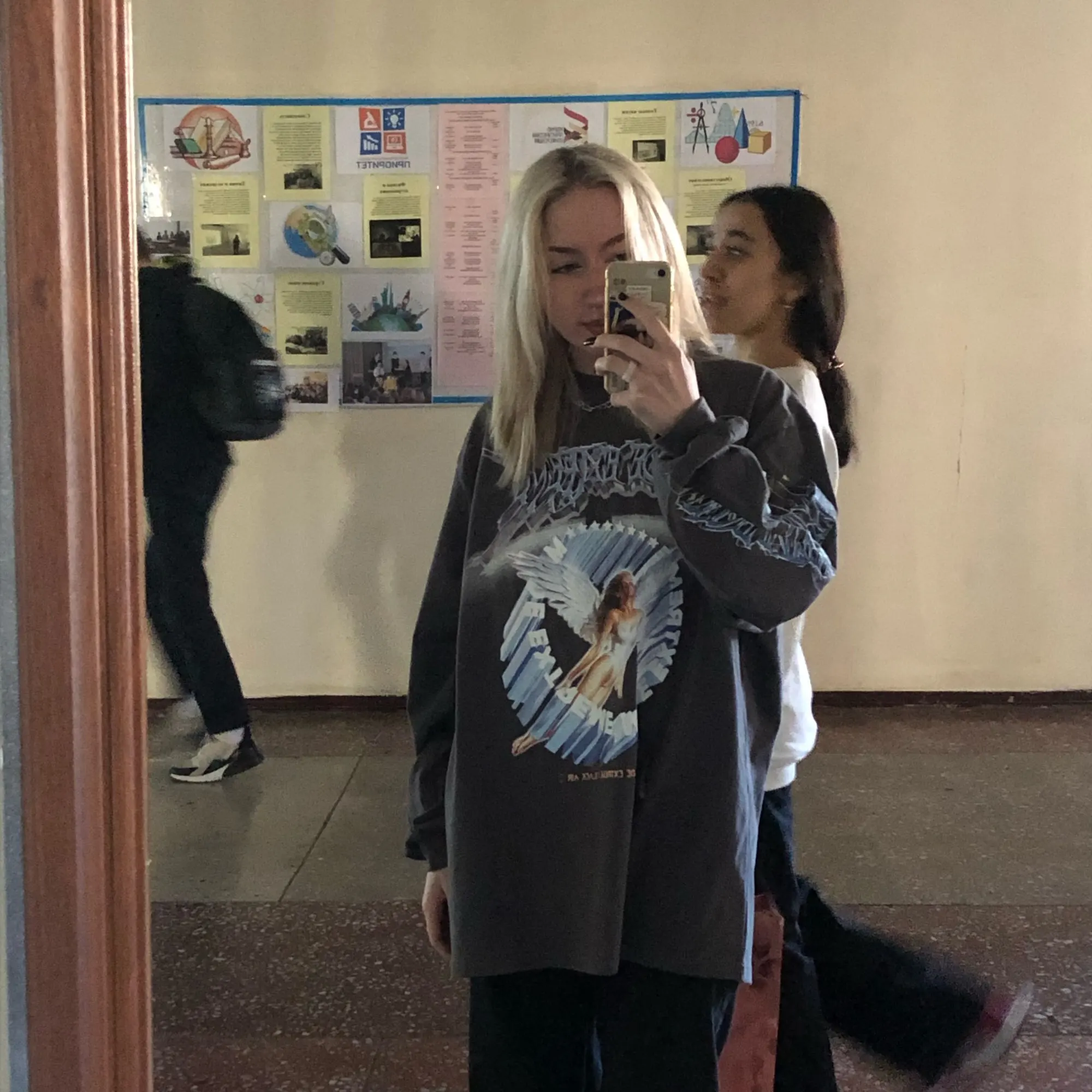 доставка курьером почта России, неделю, наклейка наклеяна на толстовке