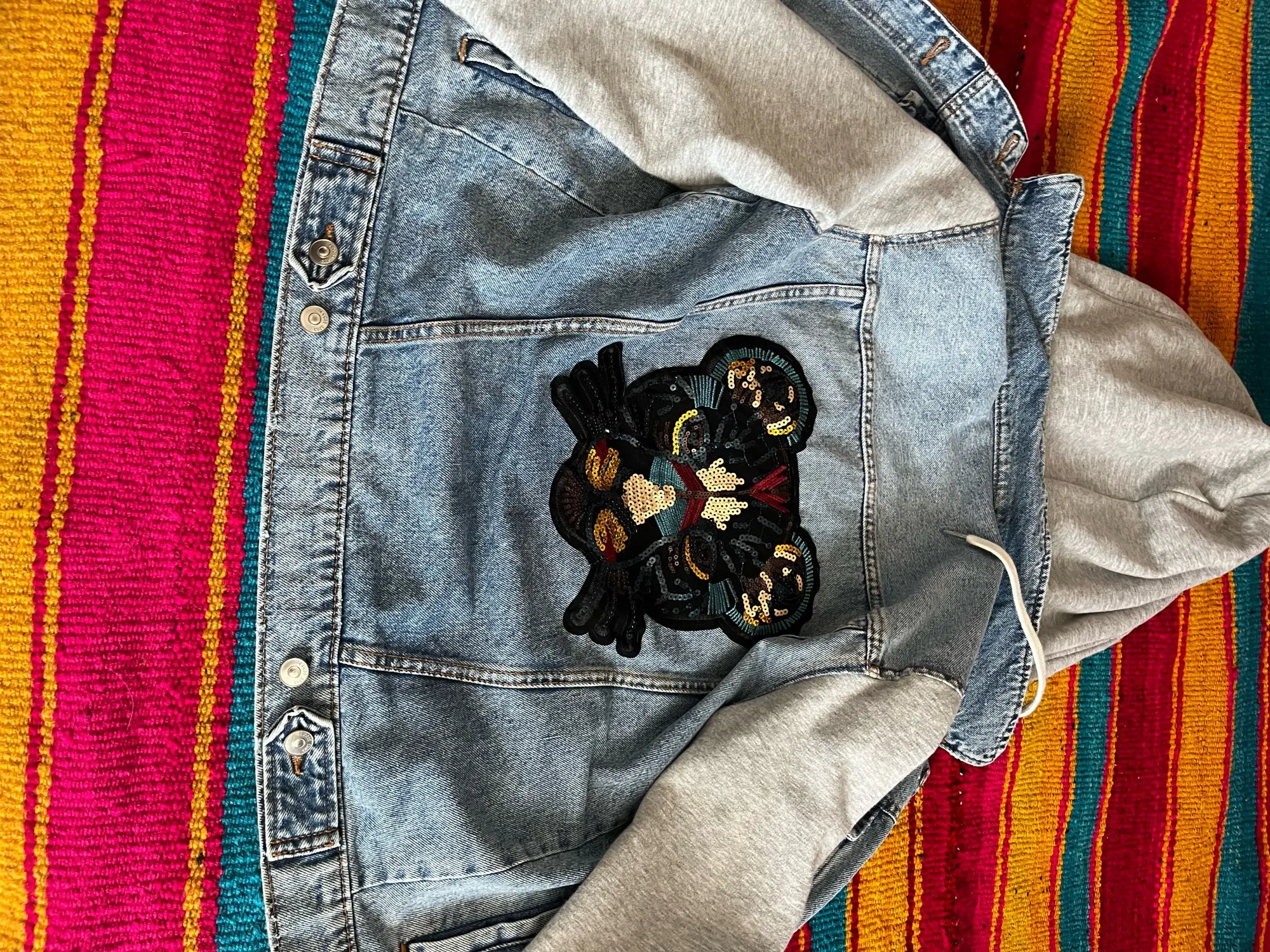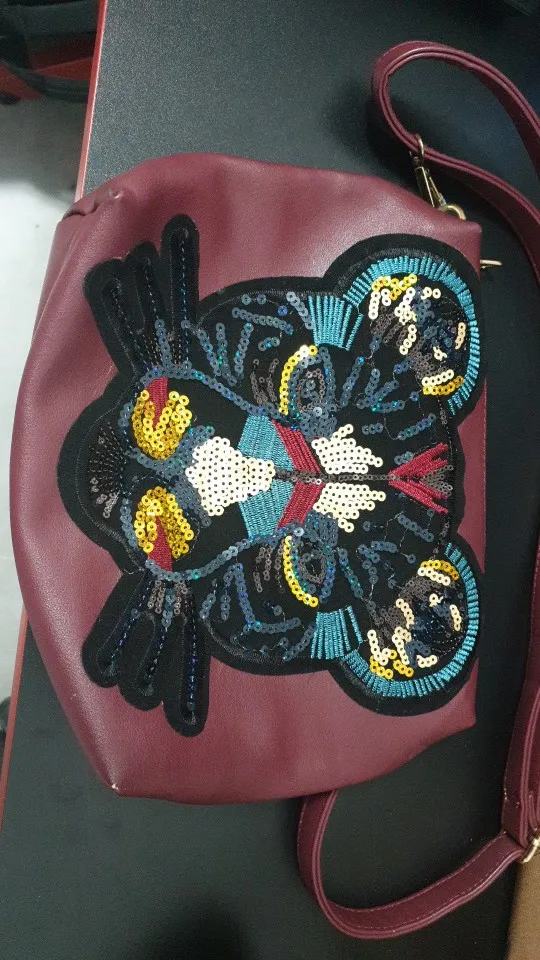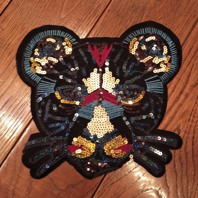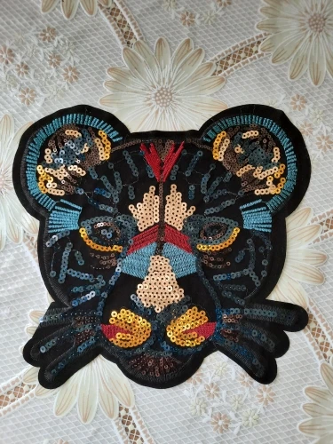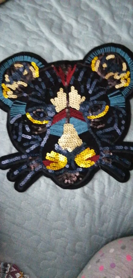 хорошая крупная нашивка, пайетки действительно не по всей поверхности, но в общем-то и не требуется. единственное, на зрачках пайетки темные нашиты и издалека теряется вид глаз, поэтому нашью на зрачки дополнительно что-нибудь яркое. +++
