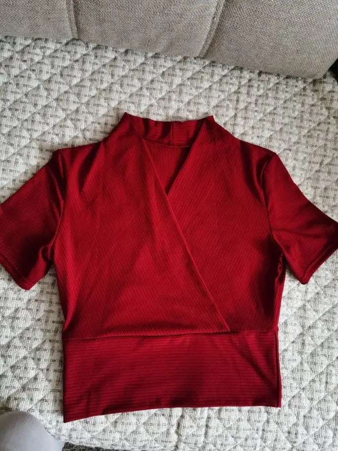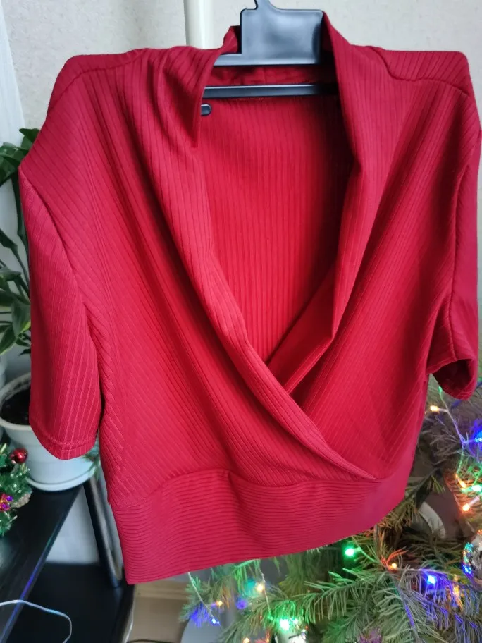 Топ отличный, цвет красивый, вишнёвый, насыщенный.. Все как заявлено.. Заказала размер XL на русский 50..К сожалению, мне очень маленький, примерно, на русский 46..Подарю дочери