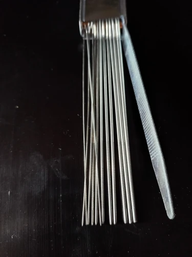 От этих напильников вообще не ожидал чудес, одно название. Порожек гитары совсем не пилят. Попробовал сначала на простой деревяшке - даже тончайший лак не содрали, просто слегка заминают. А про кость и пластик вообще молчу - еле заметные следы оставили. Даже элементарно придать округлую форму углублению под струны и то проблема. Покупать копеечные напильники такого рода бессмысленно. Лучше хорошо потратиться на фирменные и горя не знать.